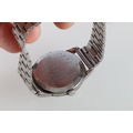 Gents Omega stainless steel wristwatch, the dial with arabic numerals and baton chapters having subsidiary seconds dial, the back with presentation inscription