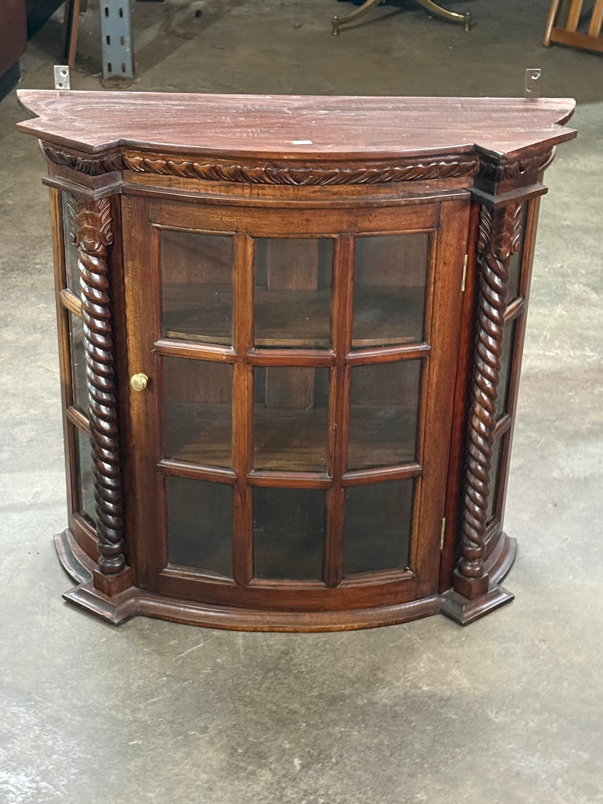 A mahogany wall hanging cabinet. 75x25.5x71cm.