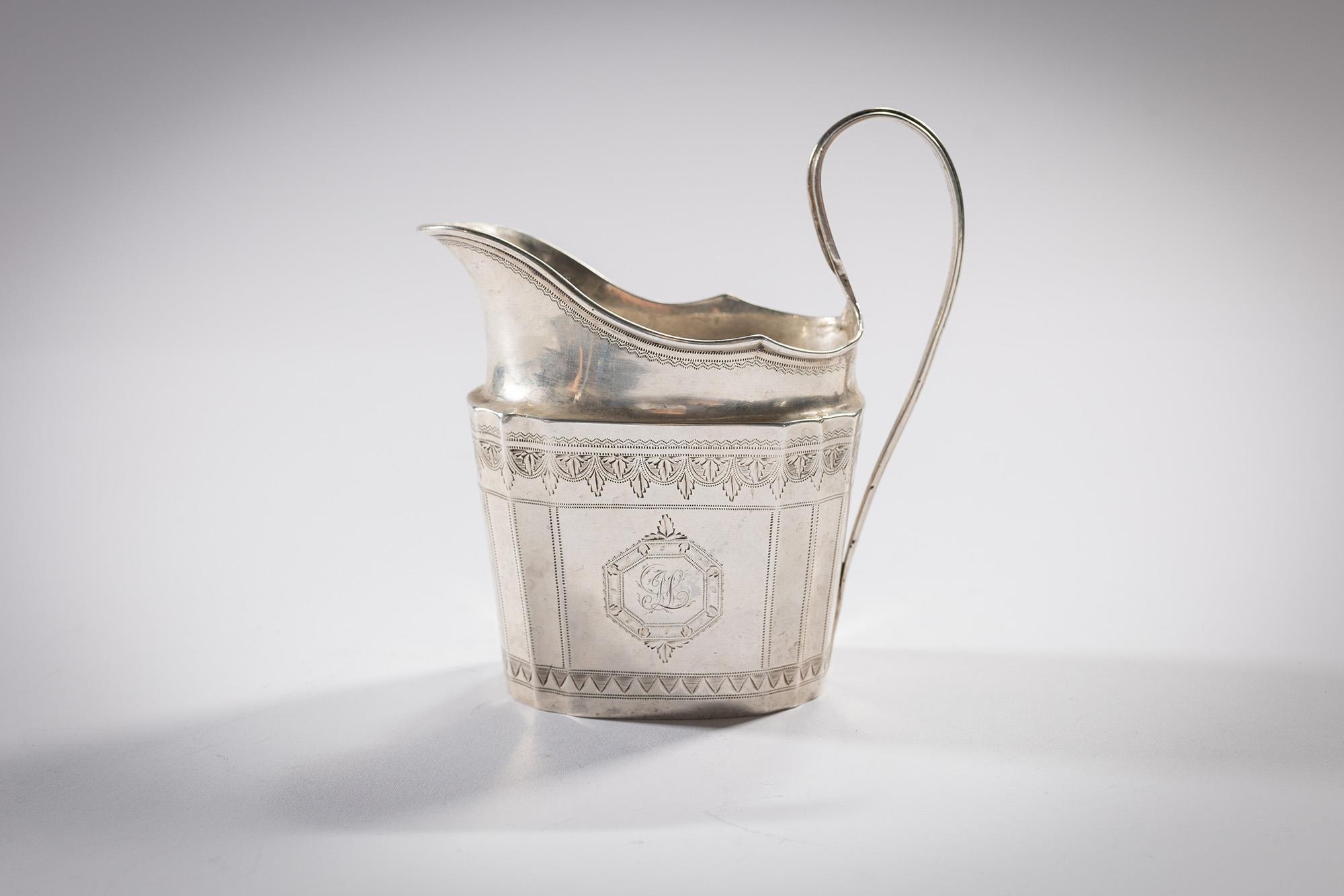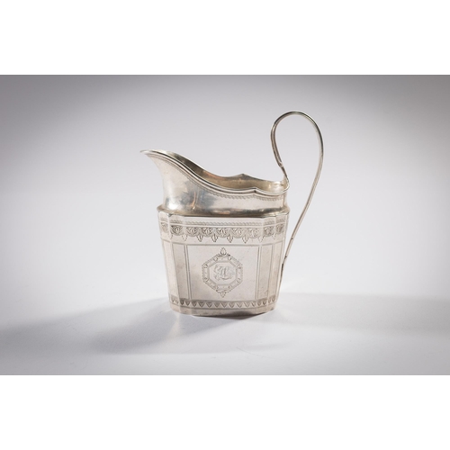AN IRISH SILVER CREAM JUG, Dublin circa 1805, (names rubbed), 13cm (h). 4.79 ozt.