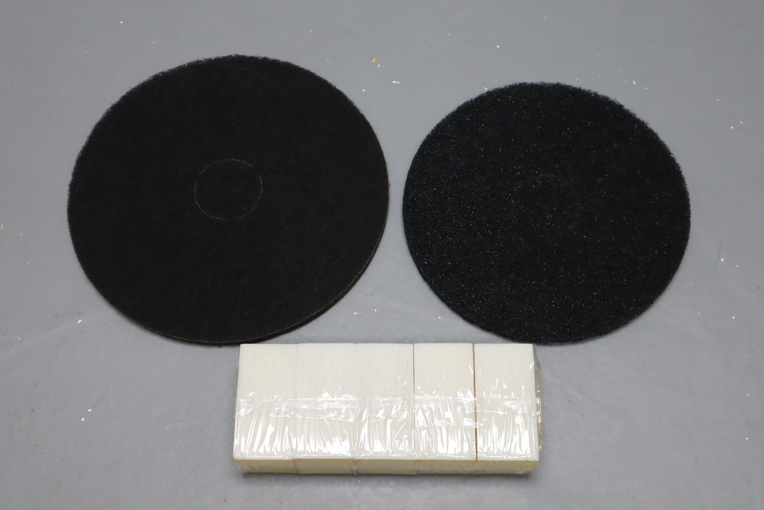 Floor maintenance pads x 3 (15" black) & four (black 17") floor pads plus a box of 60 white sponge scourers