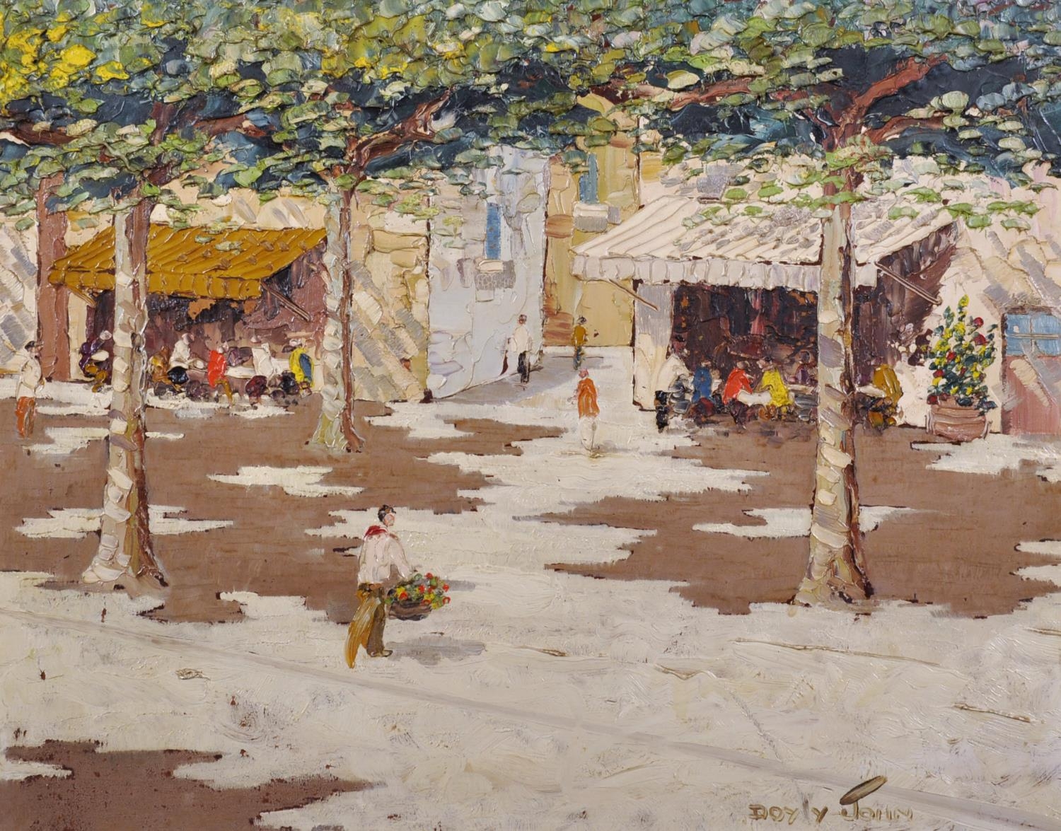 Cecil Rochfort Doyly-John (1906-1993) British. A Street Market Scene with Figures, Oil on Board, Signed, 16” x 20” (40.6 x 50.8cm)