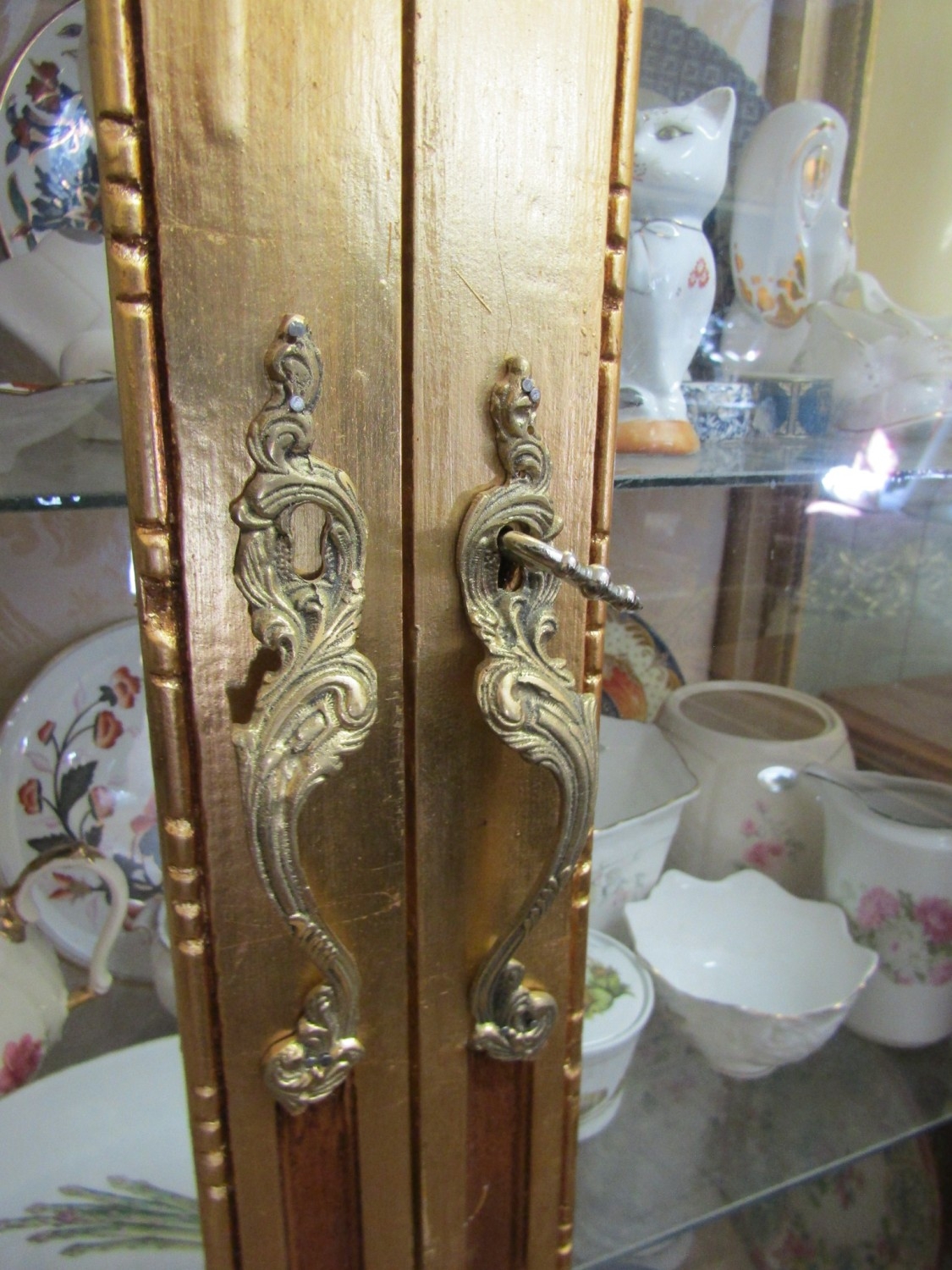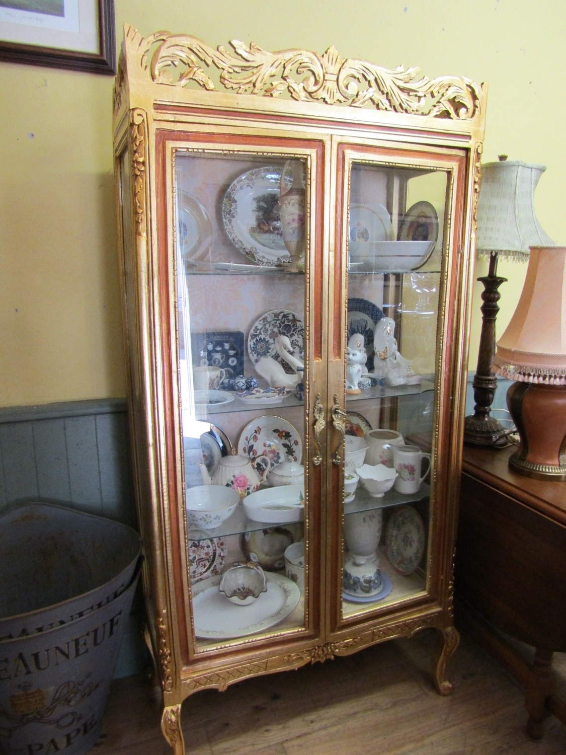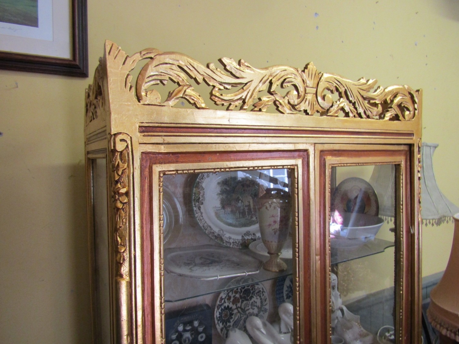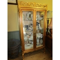 Gilded Twin Door Display Cabinet with Upper Carved Decoration Approximately 40 Inches Wide x 6ft 6 Inches High