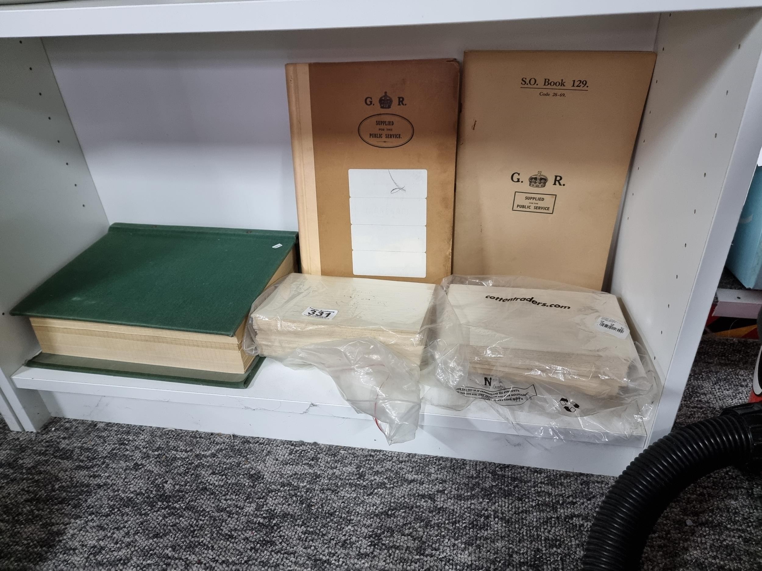 Collection of Military ephemera inc G.R. Public Service lined and empty book, a green bound book of blank paper along with a quantity of lined writing paper. All in good order.