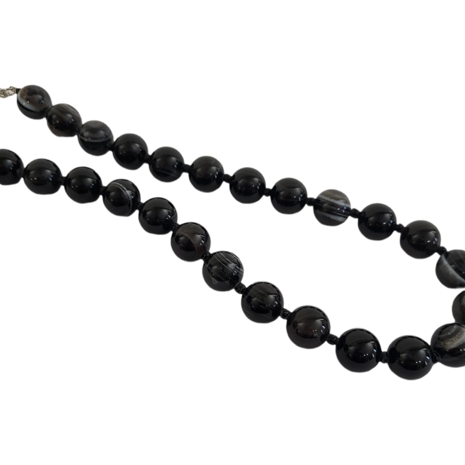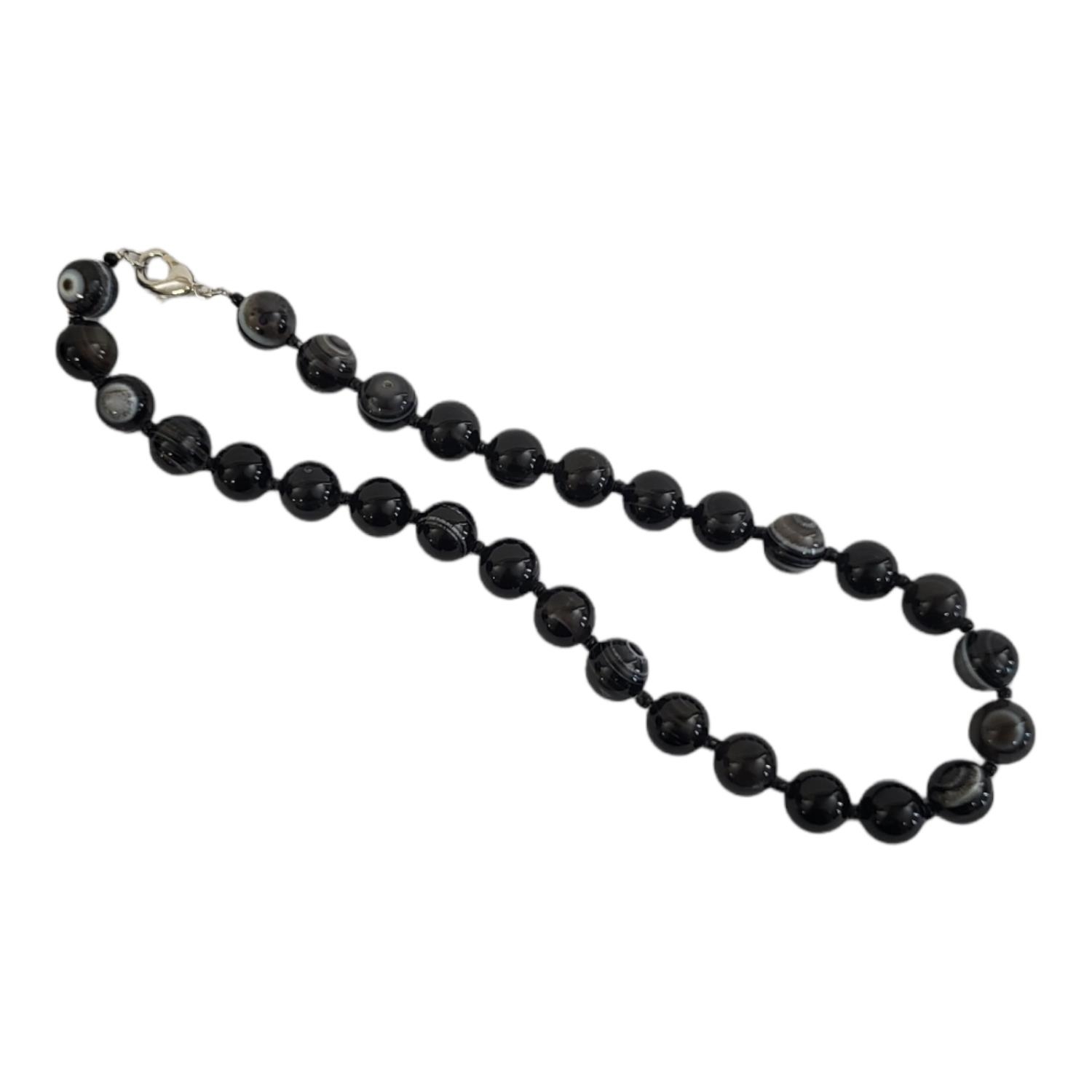 Consisting of twenty-nine solid spherical agates on a white metal clasp.