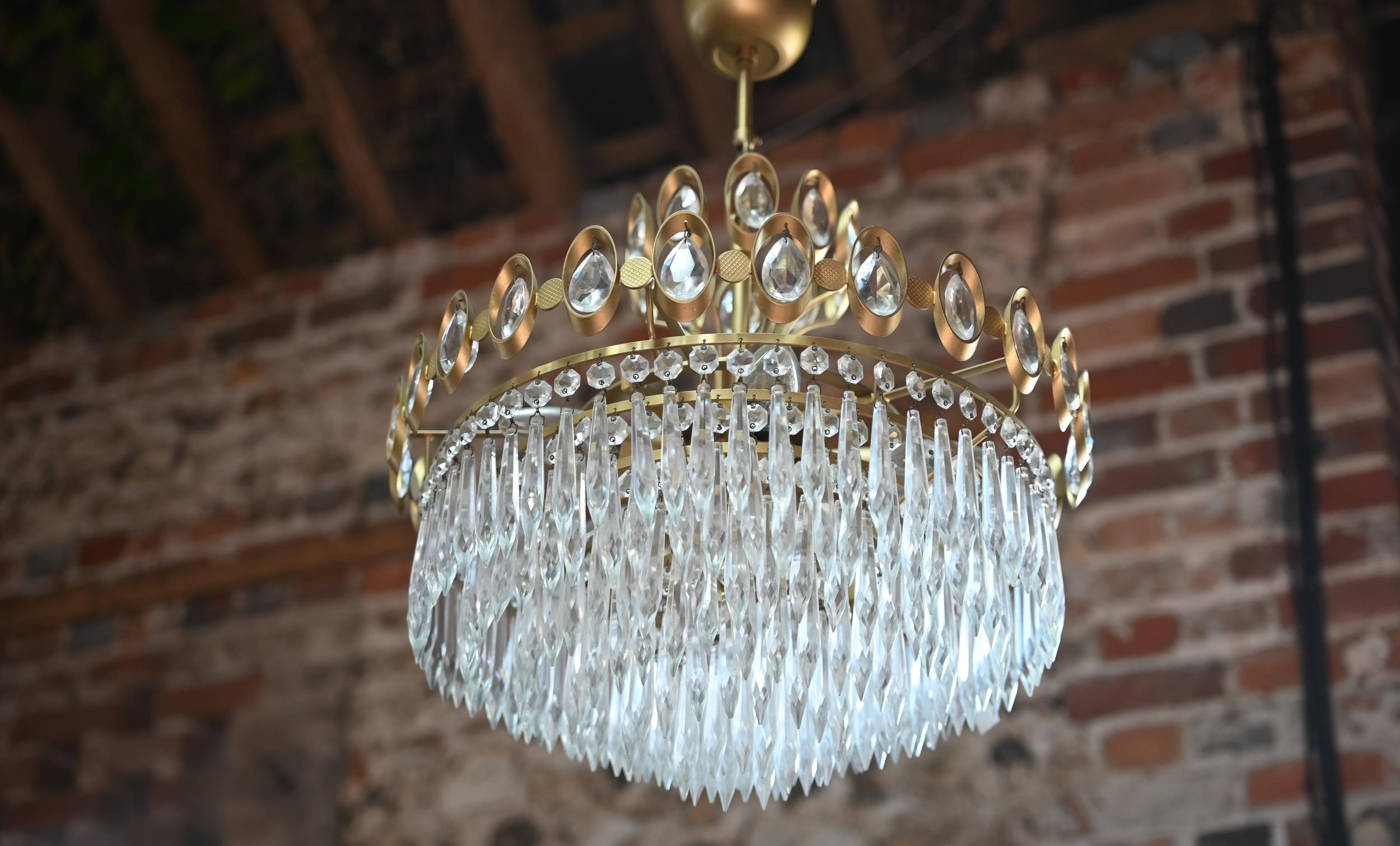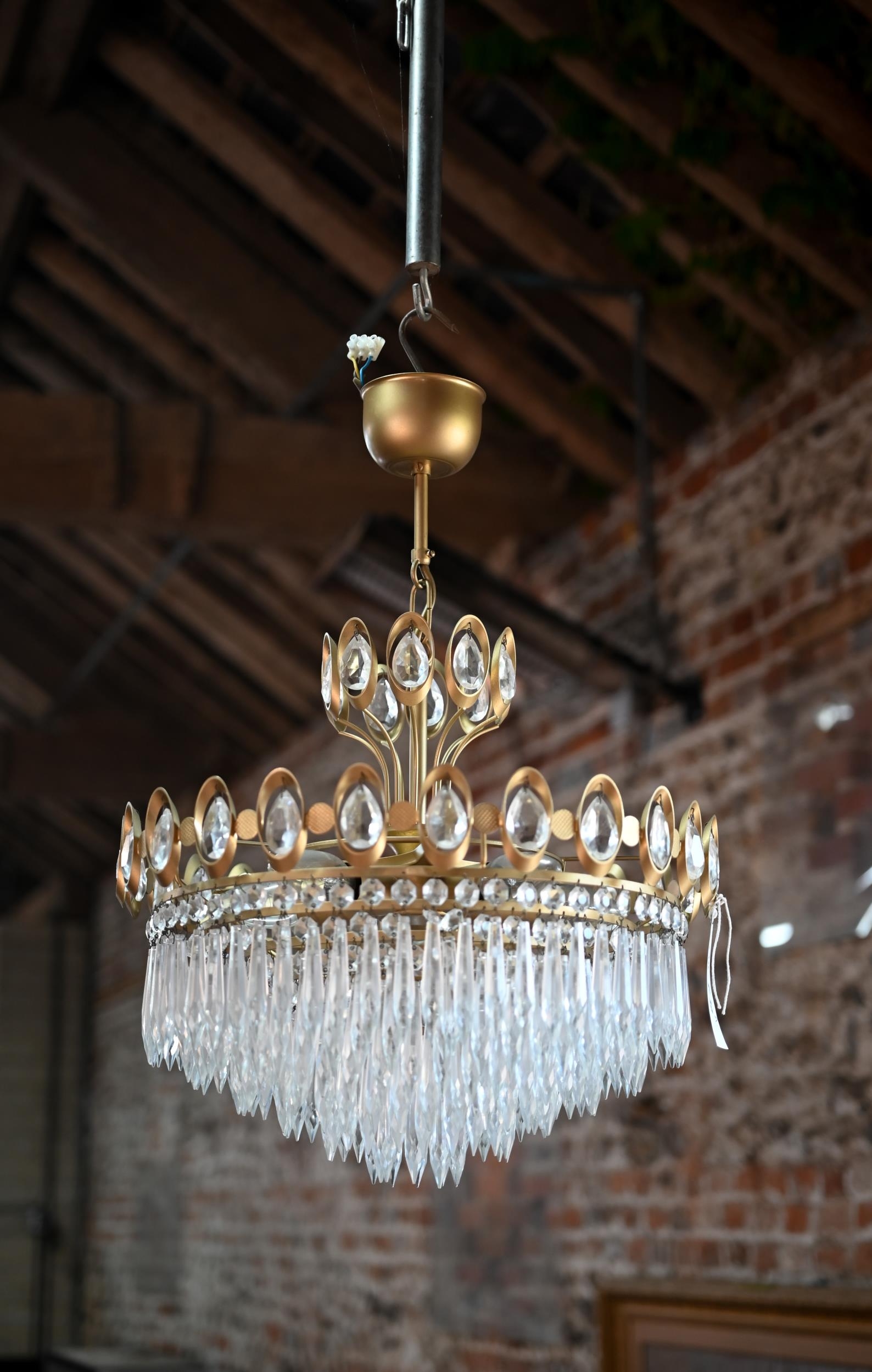 both very good, undamaged, original finish, no breaks or losses to the drops, wired to the ceiling rose fitting - untested