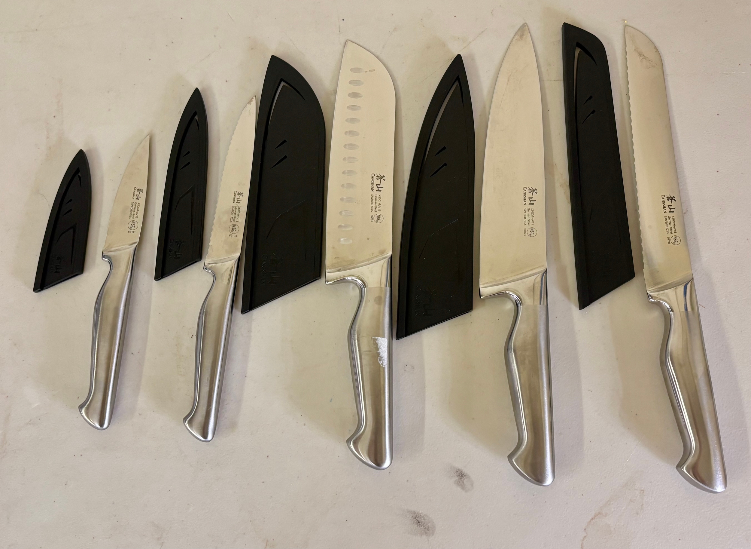 SET OF 5 CANGSHAN KITCHEN KNIVES IN STAINLESS STEEL WITH SHEATHES