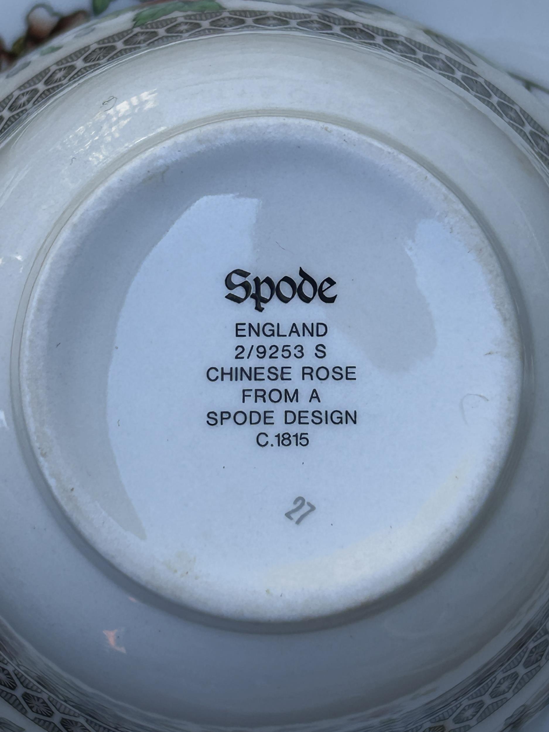 Collection of 107 pieces of Spode Chinese Rose tea and dinnerware, old and new marks, no damage.(2)