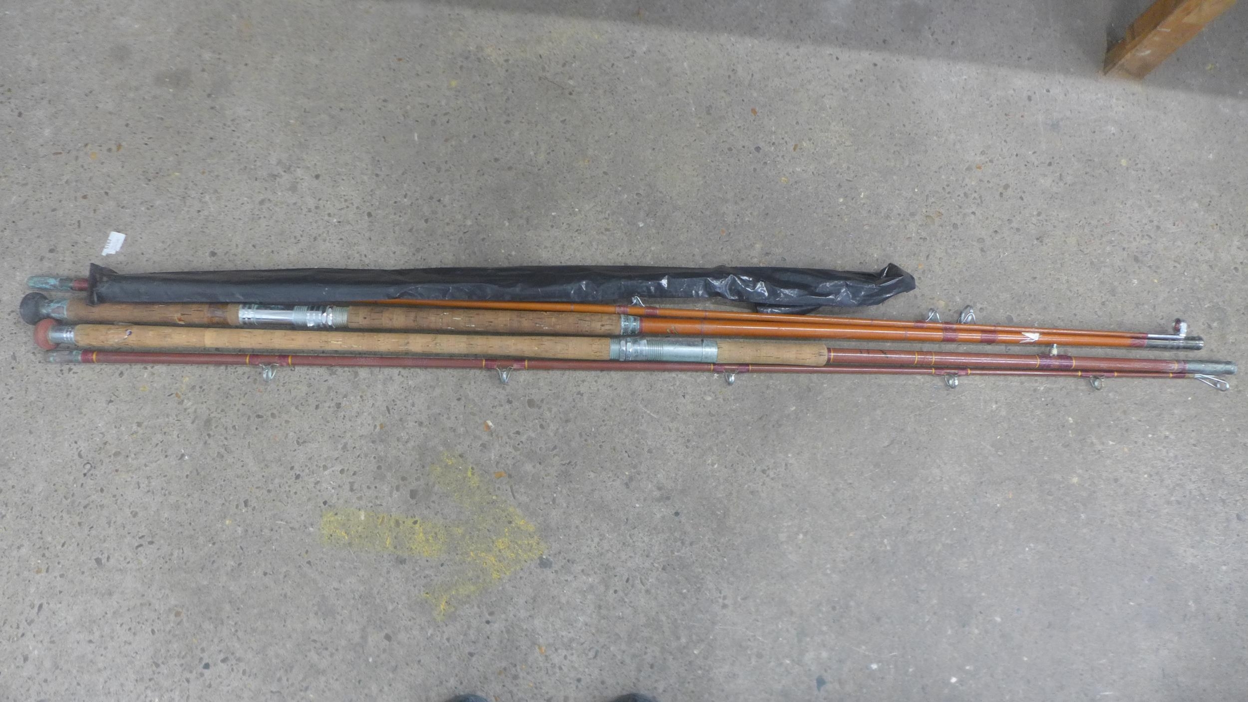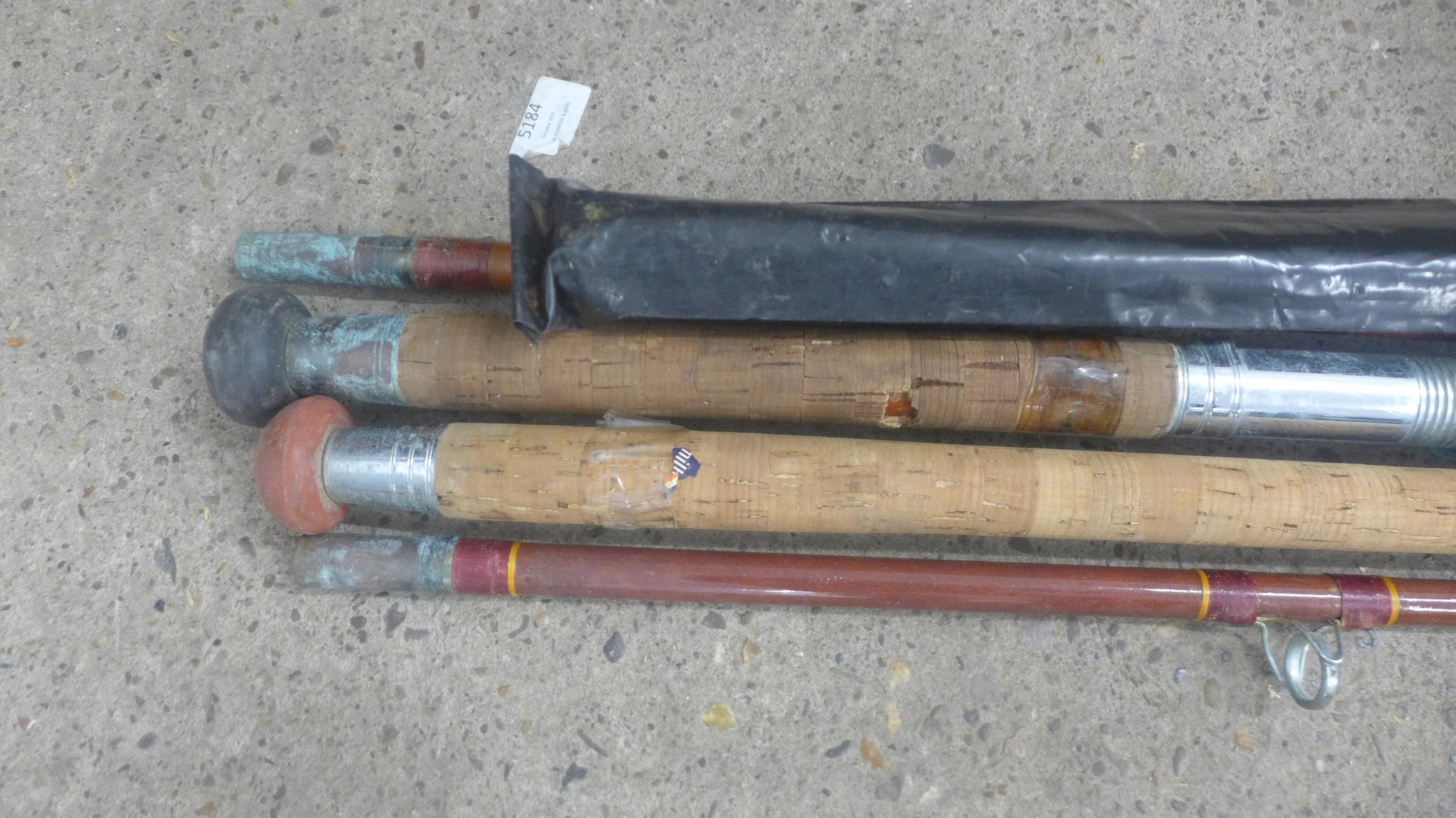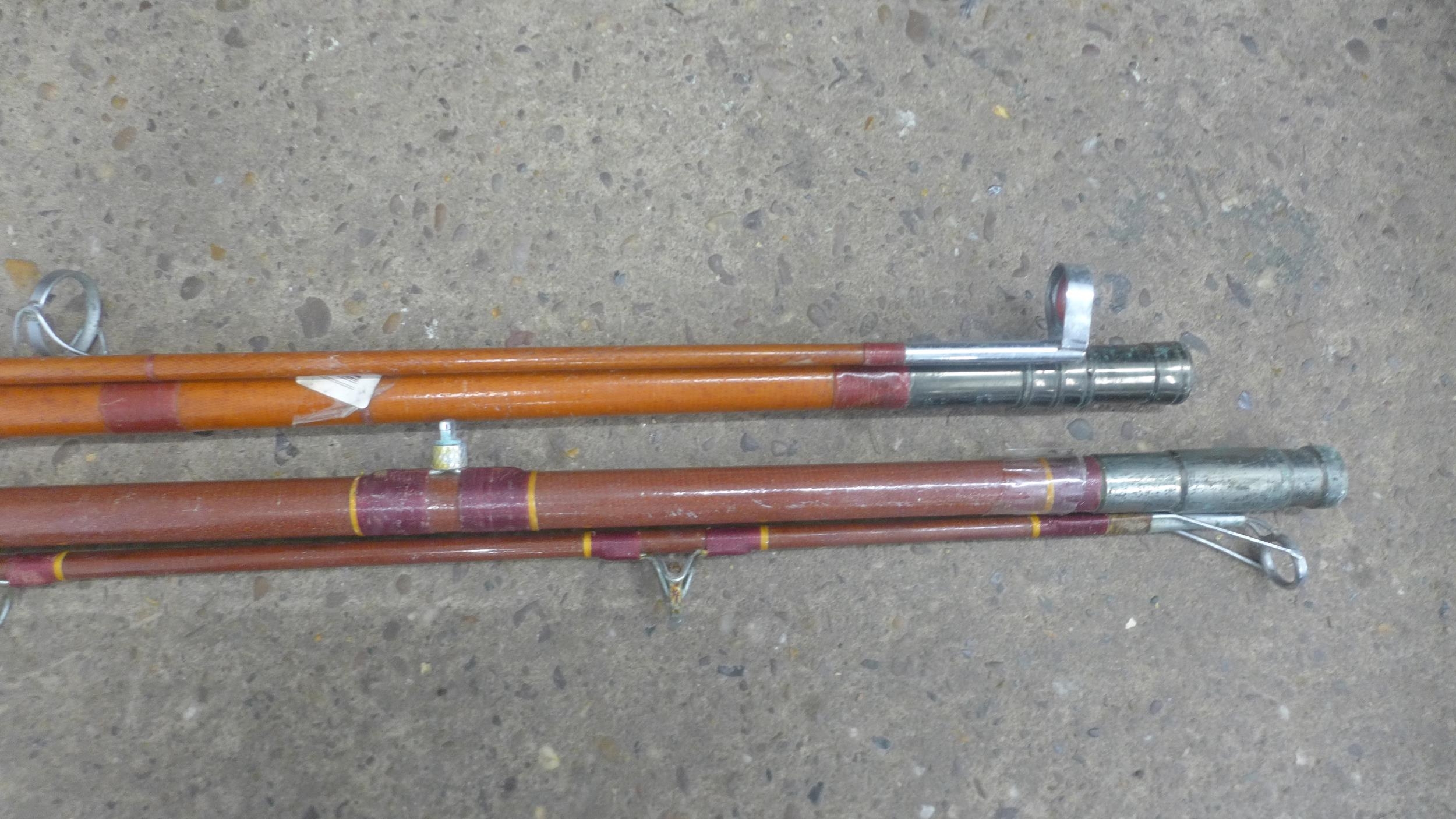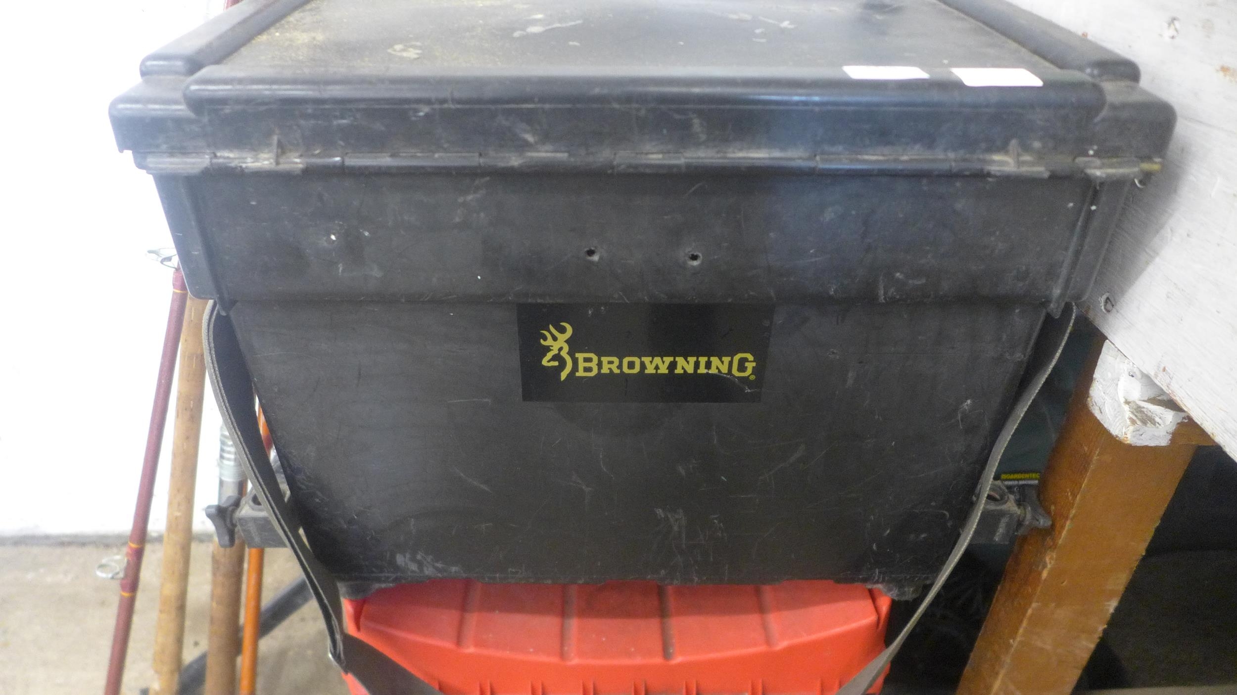 A large quantity of fishing equipment including 3 rods, large bag of keep nets/landing nets and 2 fishing boxes