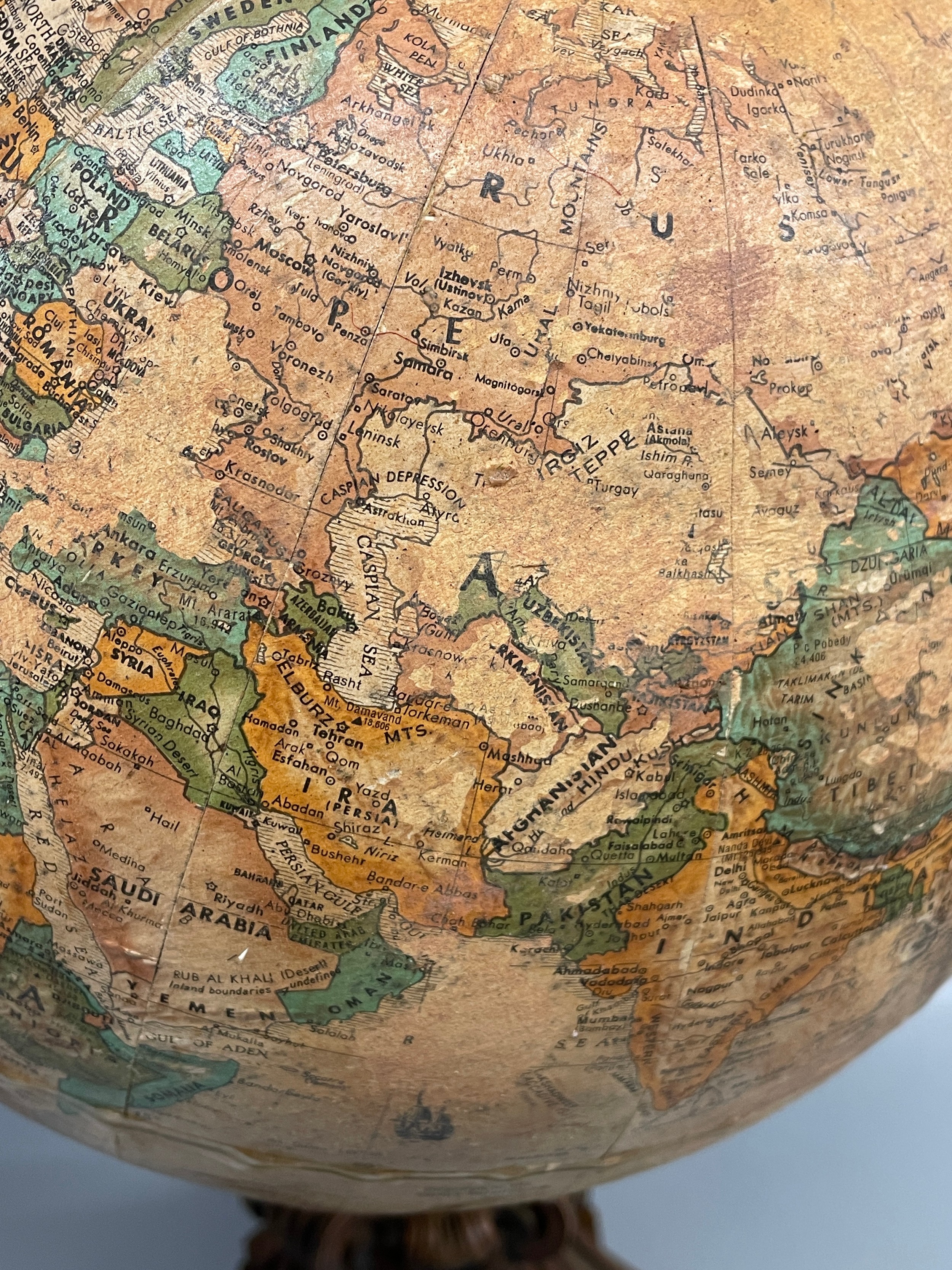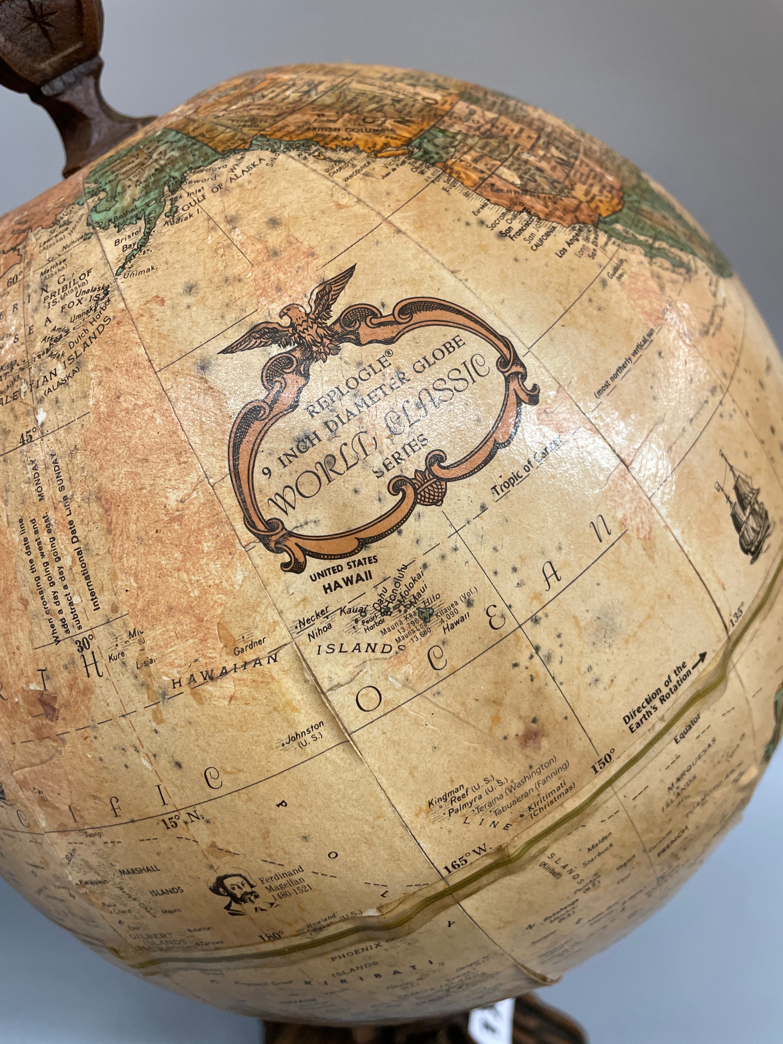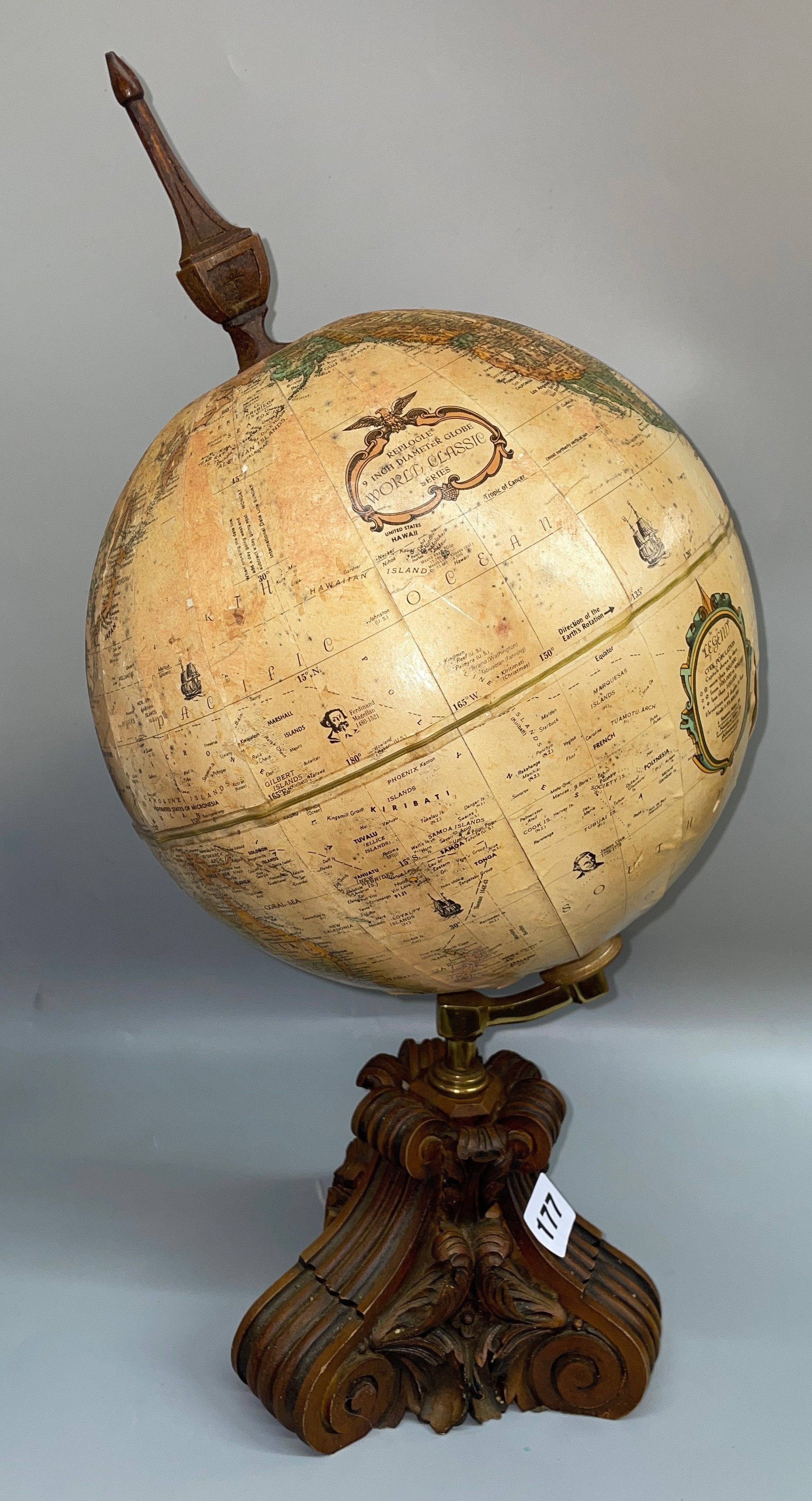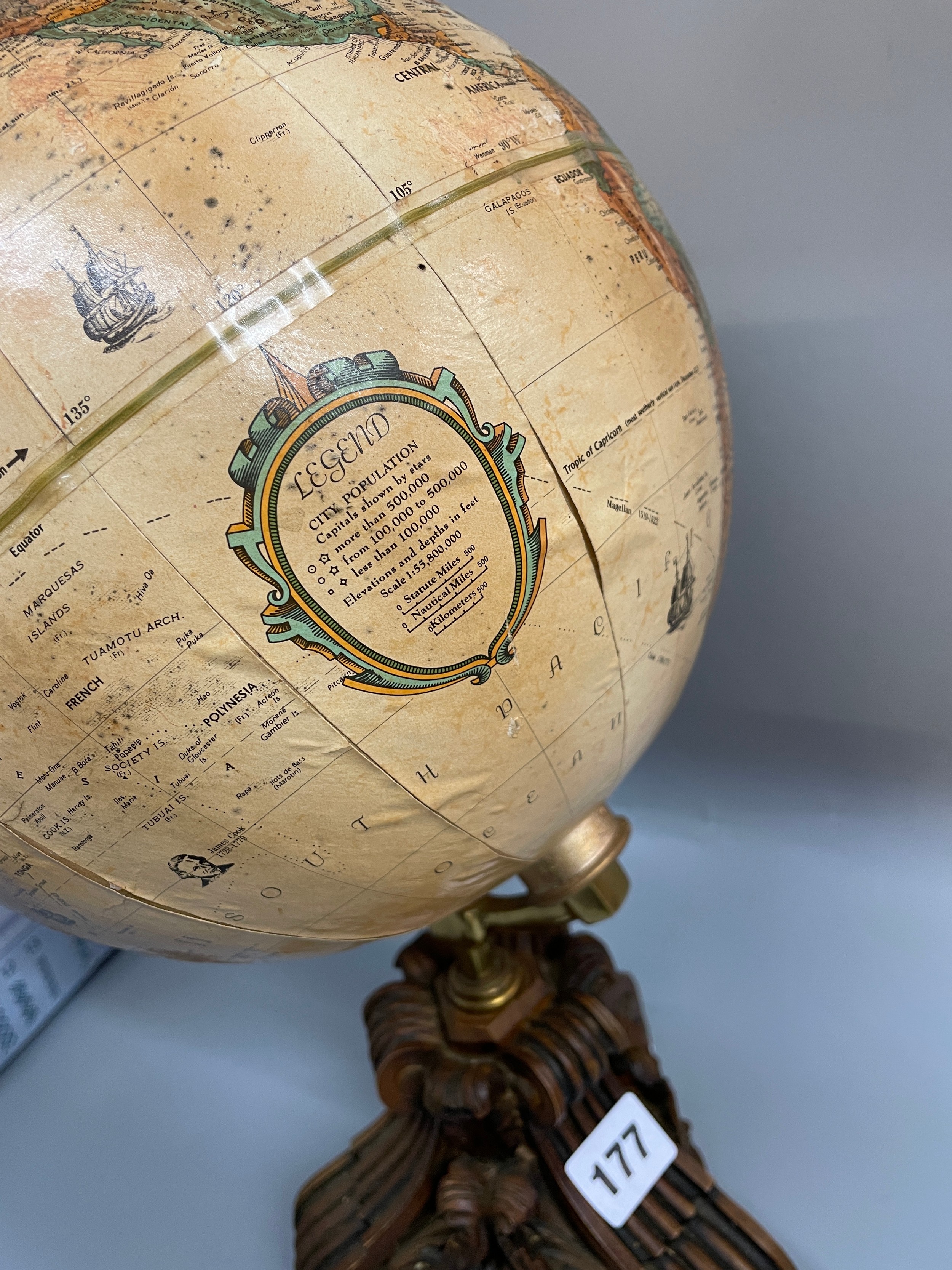 LEGEND TERRESTRIAL GLOBE ON ORNATE CARVED BASE