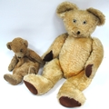 Chad Valley Brown Plush Teddy Bear, with zip to back, one eye absent, 40cm high. A larger gold plush bear with moveable limbs, black stitched nose.