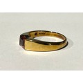 the ring is set with a princess cut pyrope/almandine garnet that measures approx. 4.80mm (L) x 5.07mm (W) x 3.55mm (D), the ring stamped "375", ring size N 1/2, total gross weight approx. 4 grams