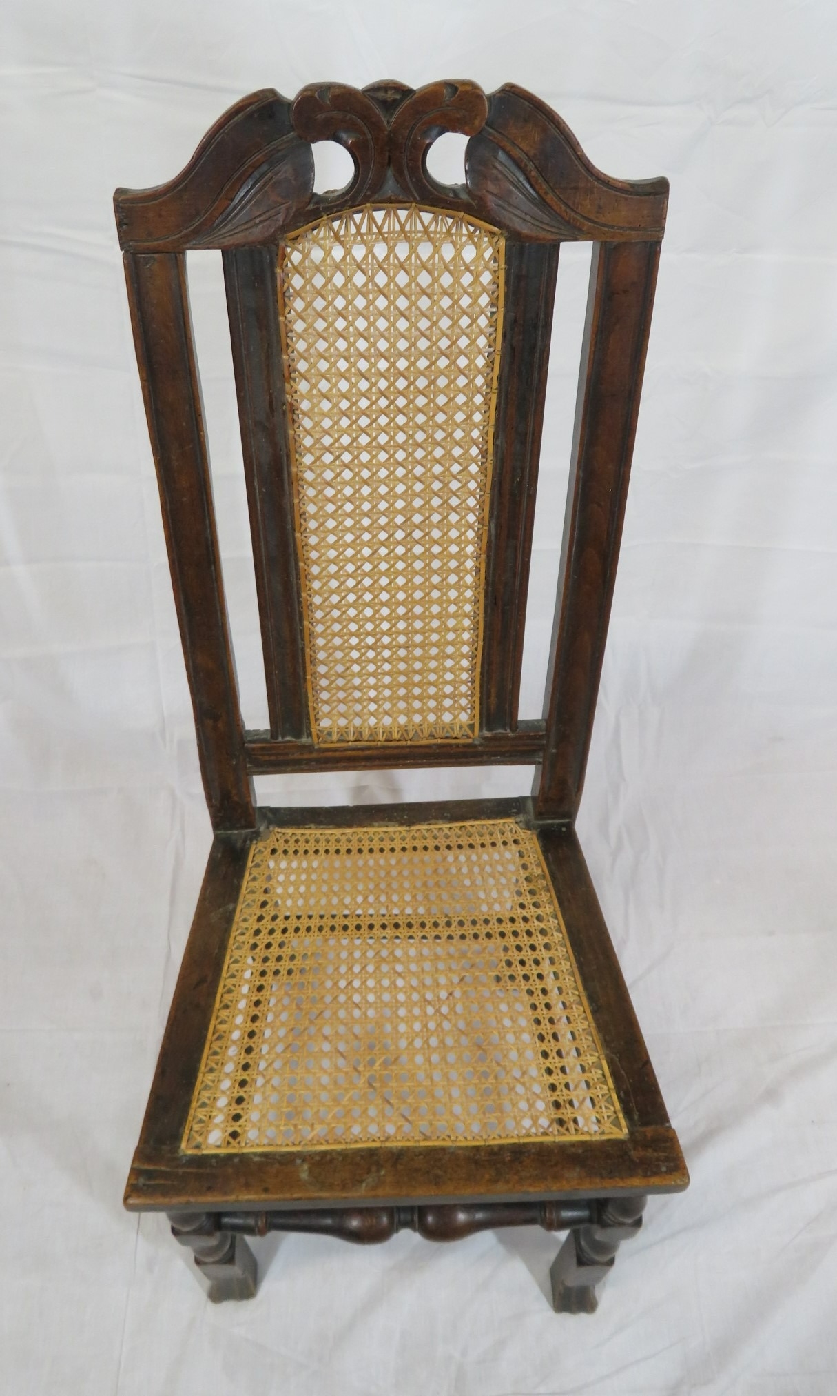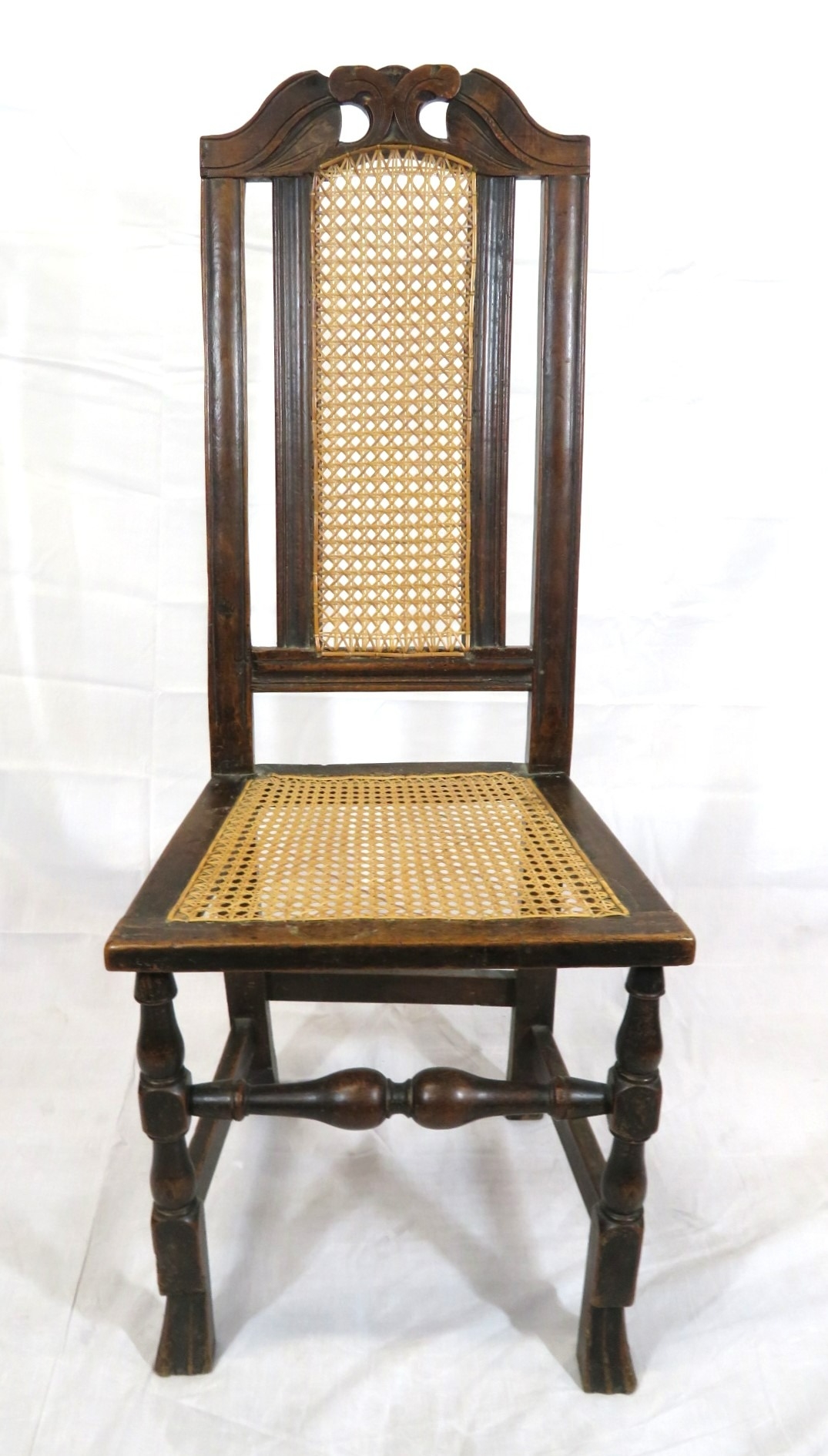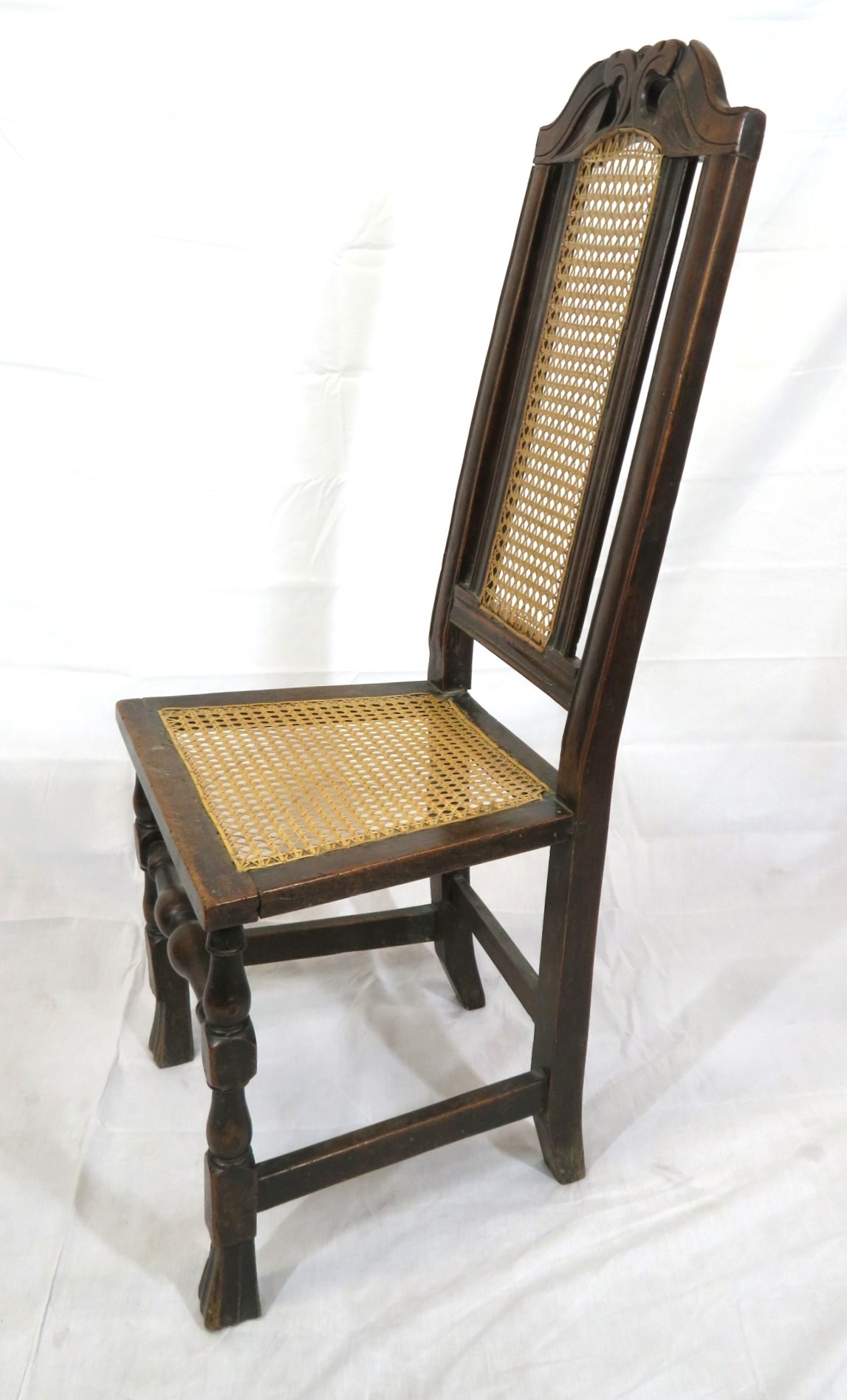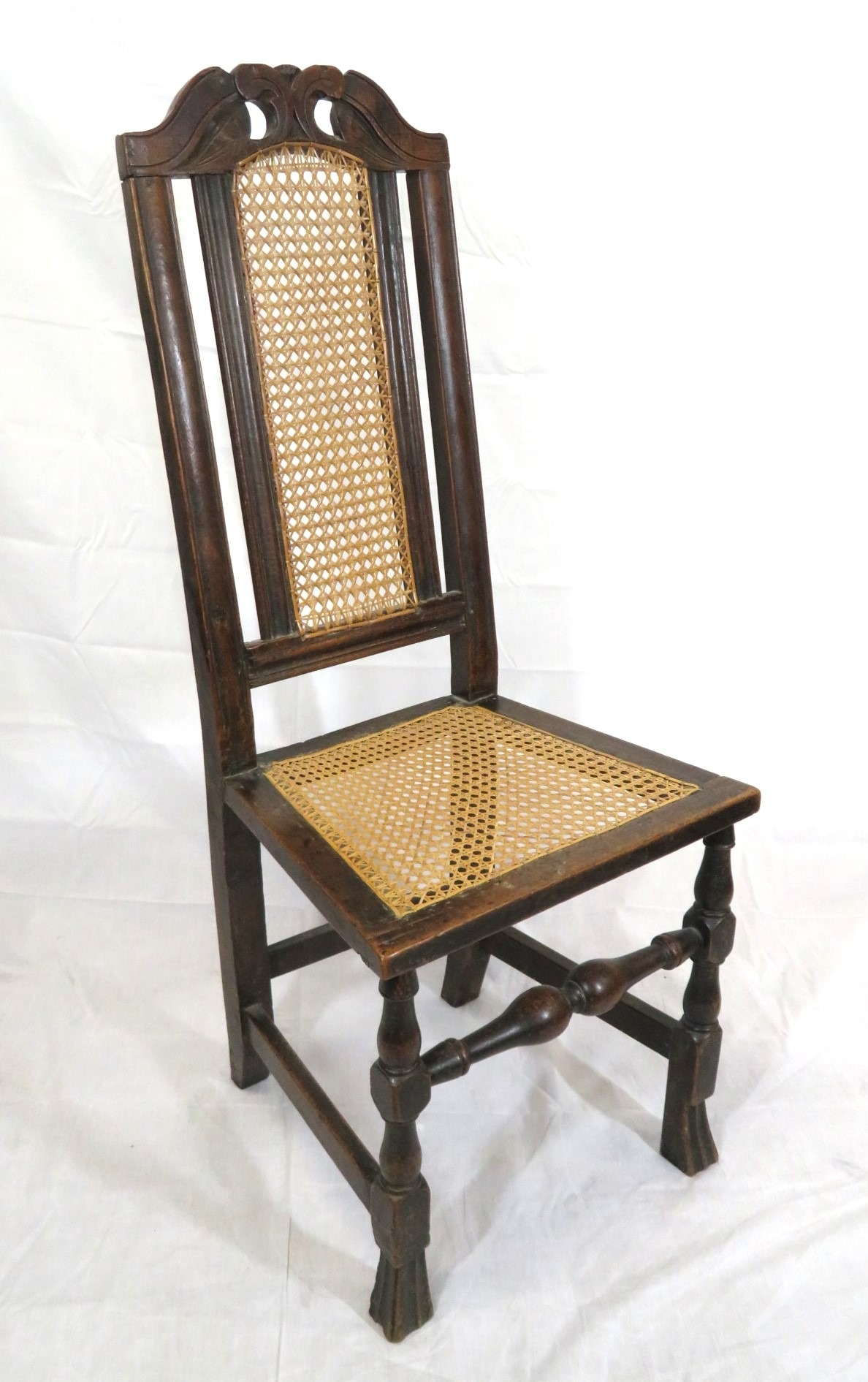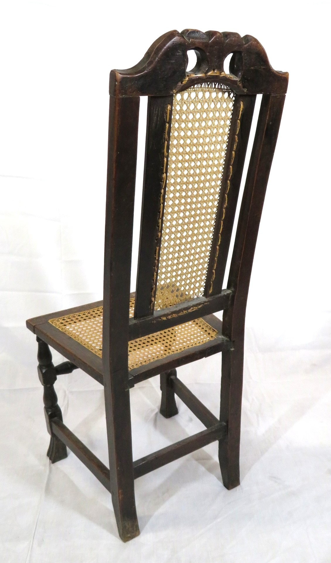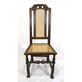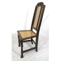 Georgian oak high-back occasional chair with cane back and seat, on shaped legs with stretchers
