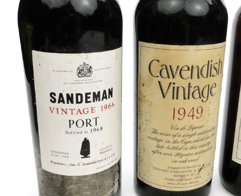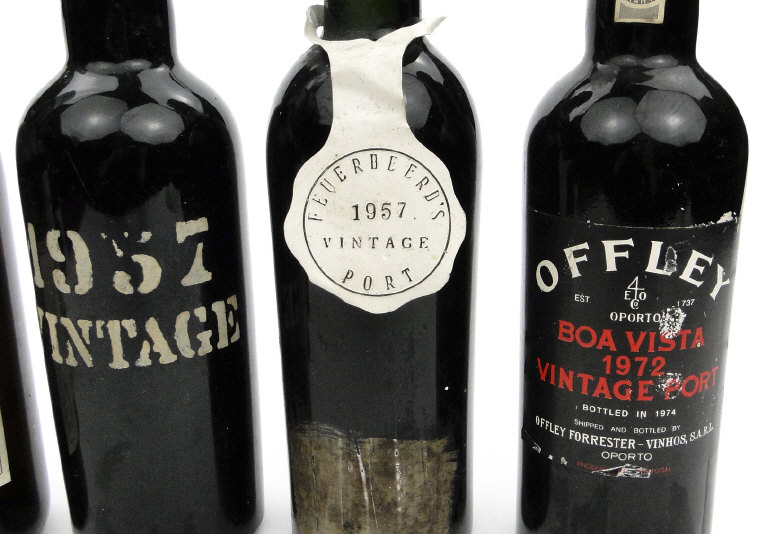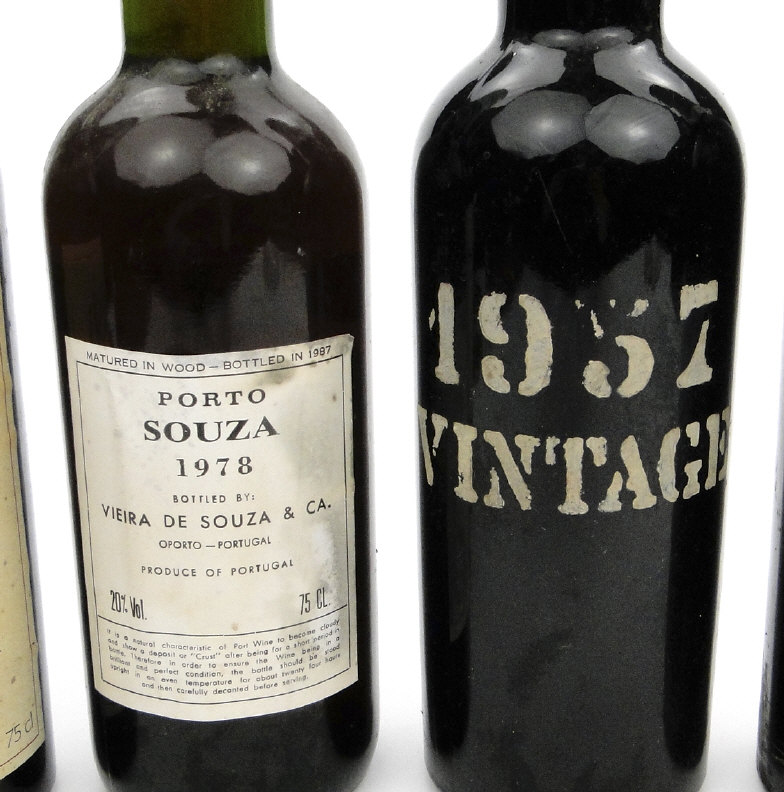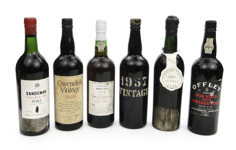 Six bottles of vintage port including Feuerbeerds 1957, Souza 1978, Sandeman 1966, etc