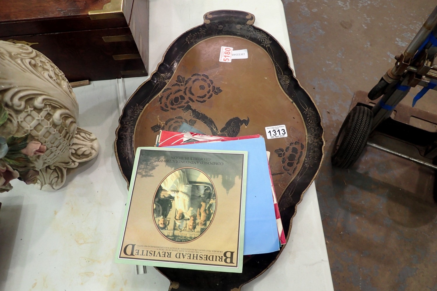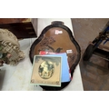 Large early papier mache tray, L: 60 cm and a quantity of mixed singles. Not available for in-house P&P