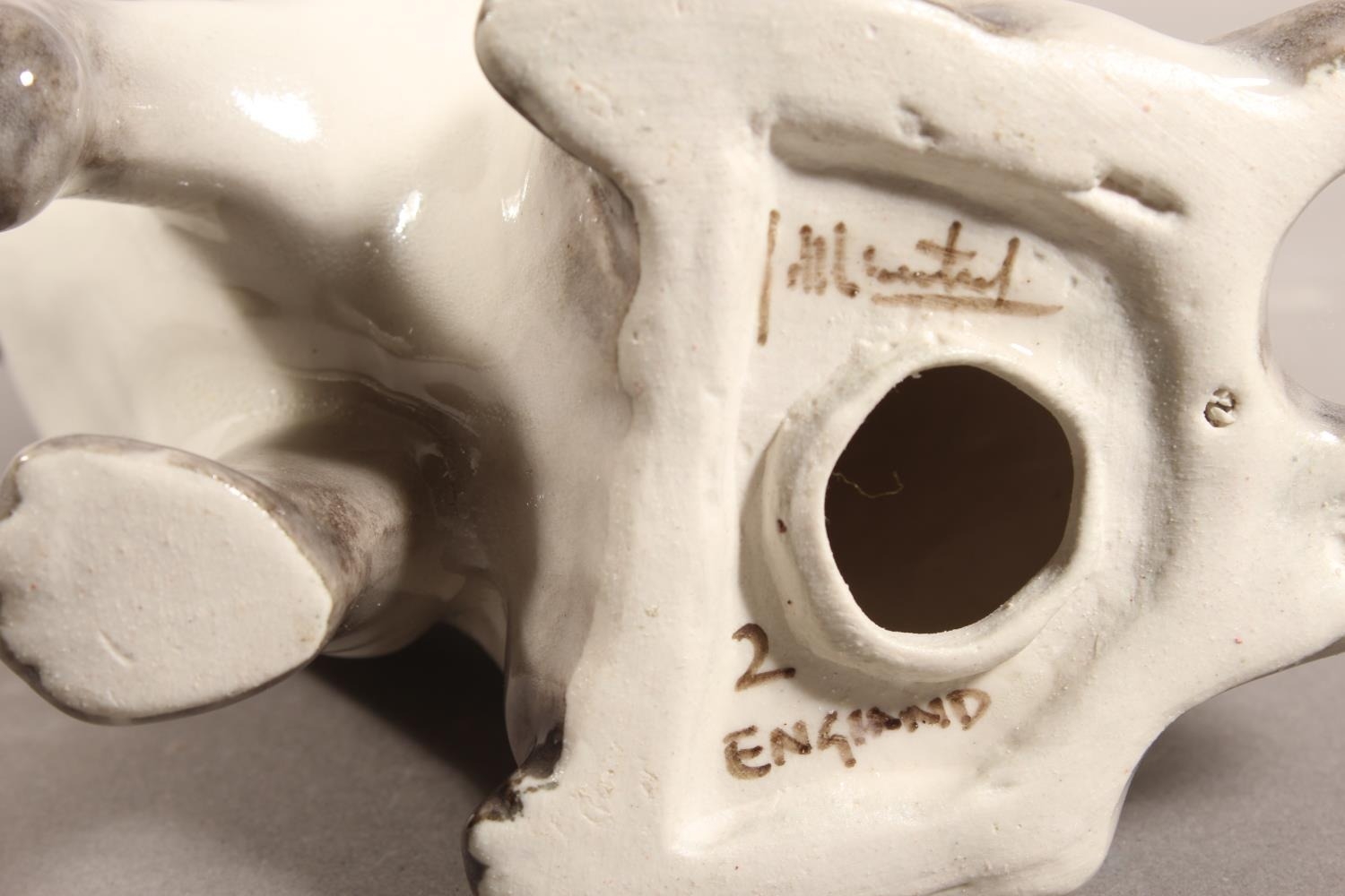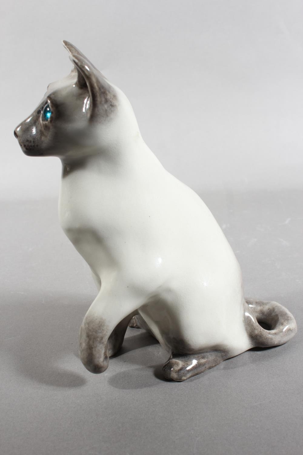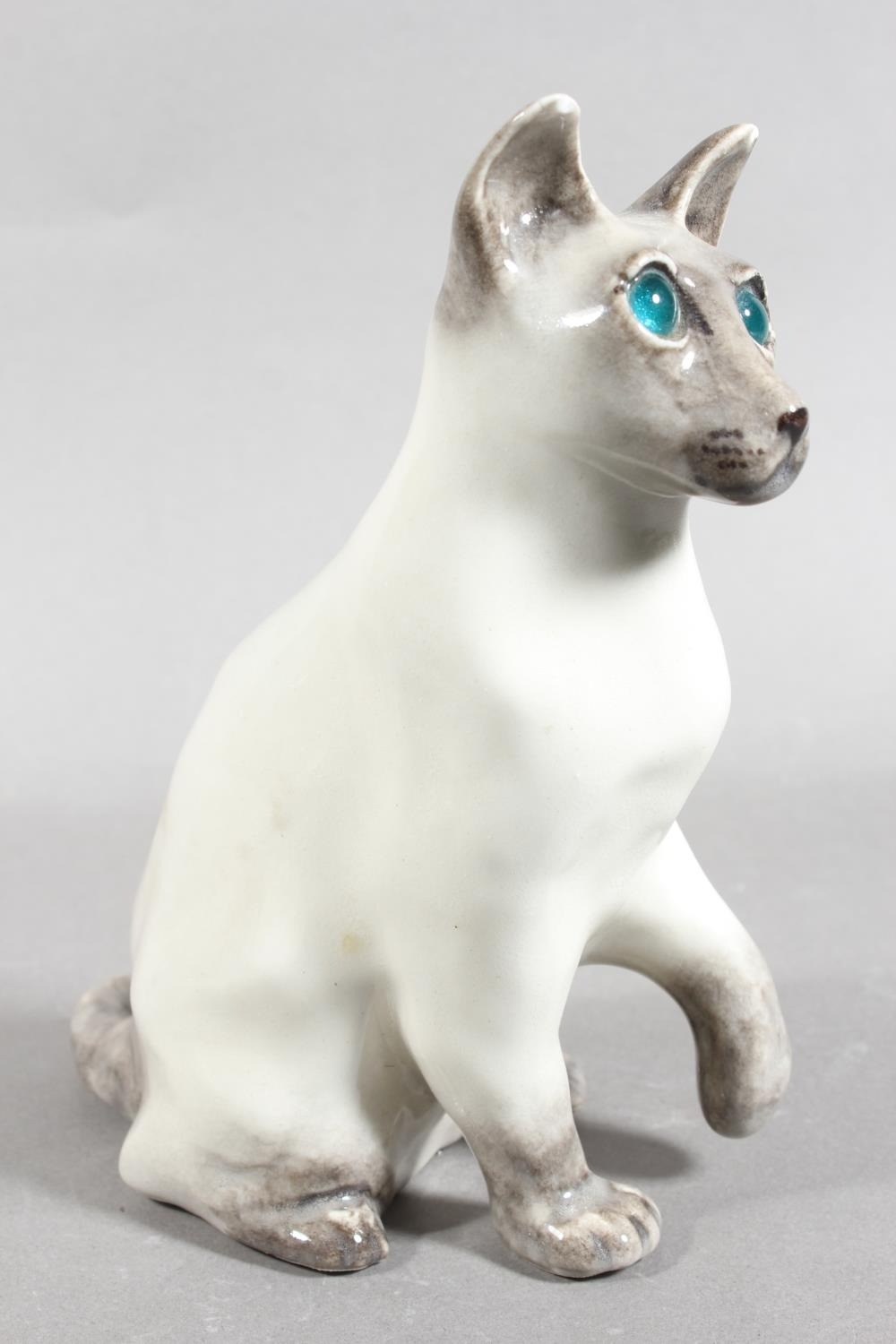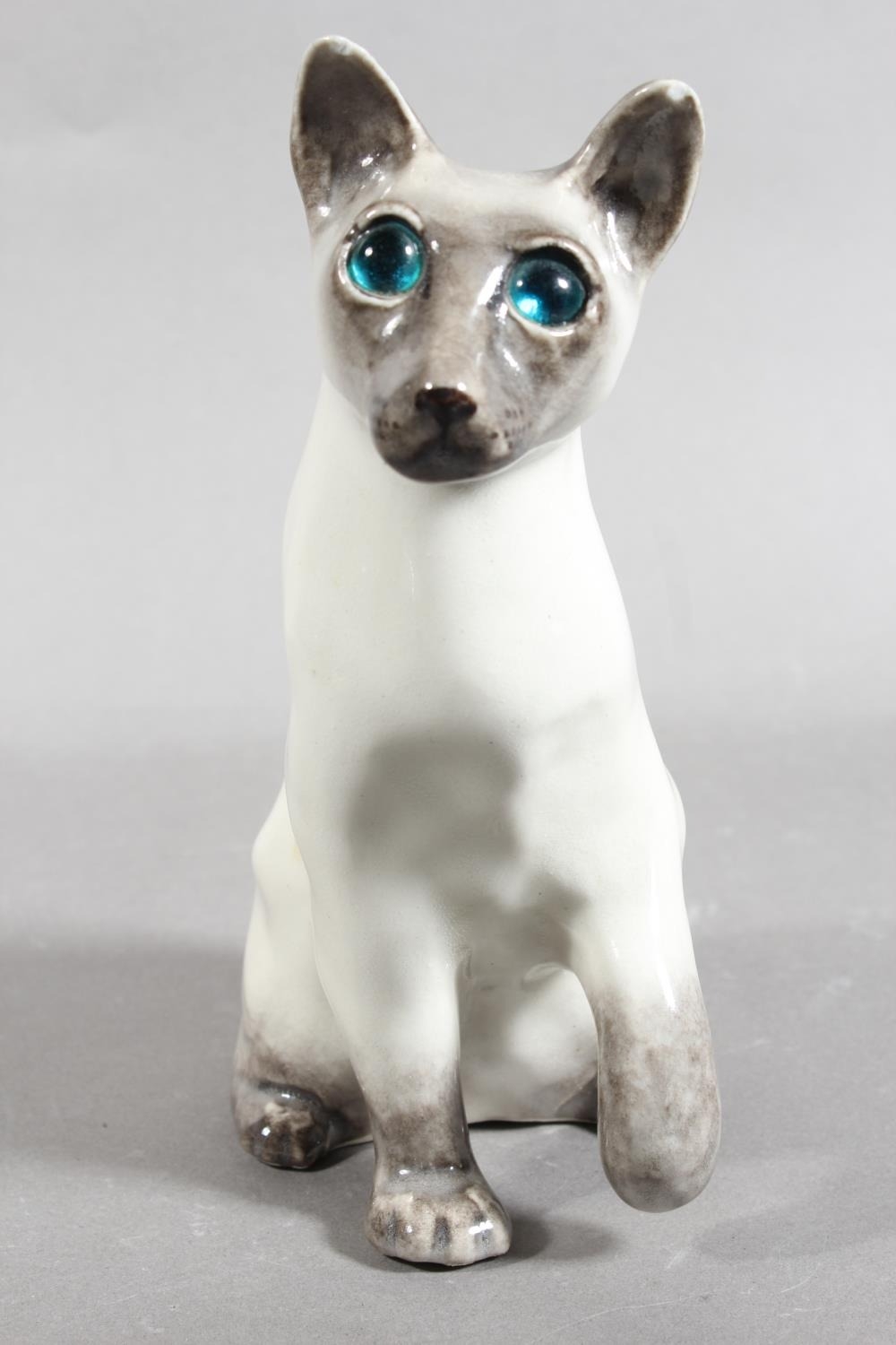Winstanley pottery Siamese cat with blue eyes, 20cm high.