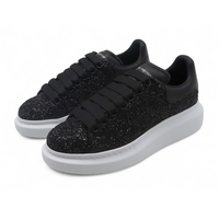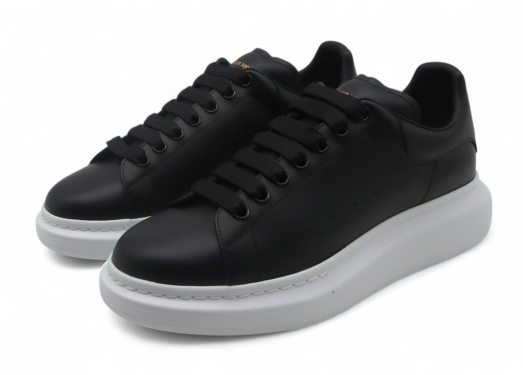 Alexander McQueen wedged sole Larry sneakers / trainers in black leather, size 43, with spare laces, bag and box