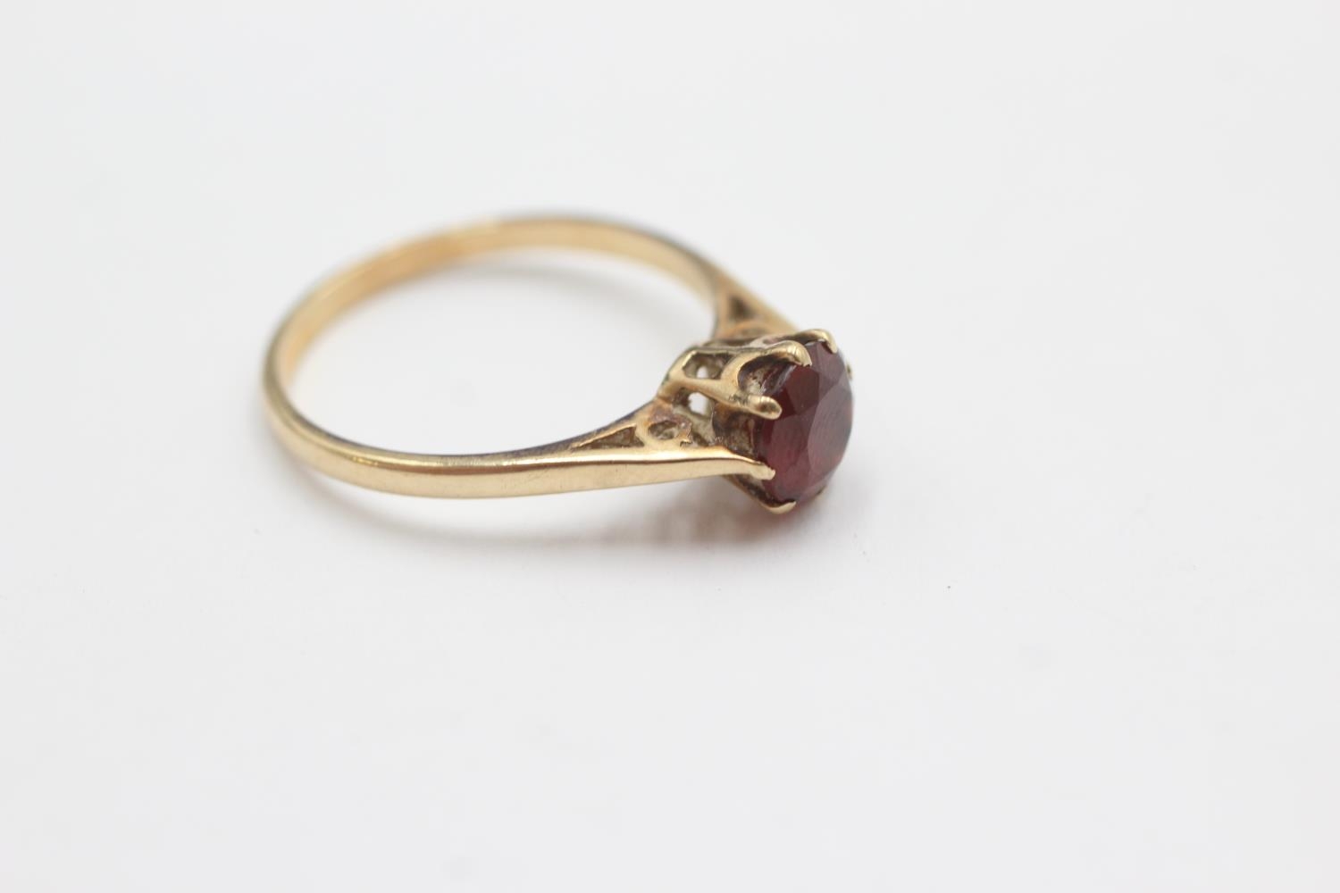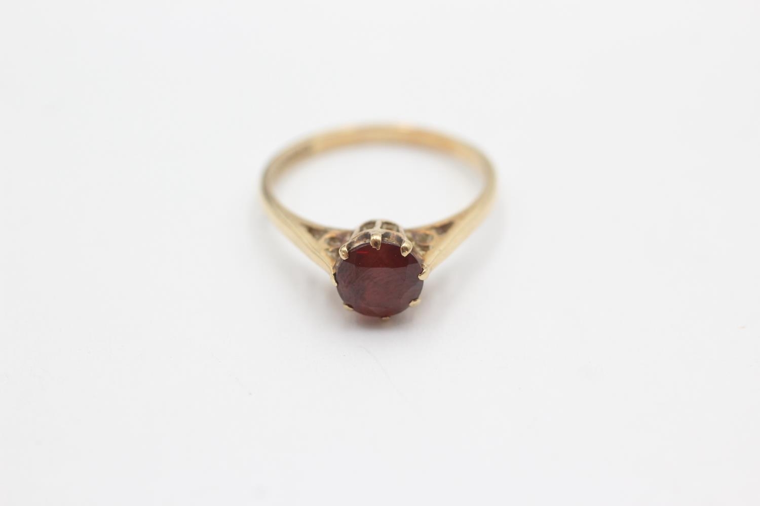 9ct gold garnet solitaire cathedral setting ring (1.9g) Size O