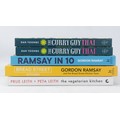 A selection of signed cook books to include Dan Toombs The Curry Guy Thai x2, Prue and peta Leith the vegetarian kitchen and two Gordon Ramsey books
