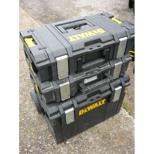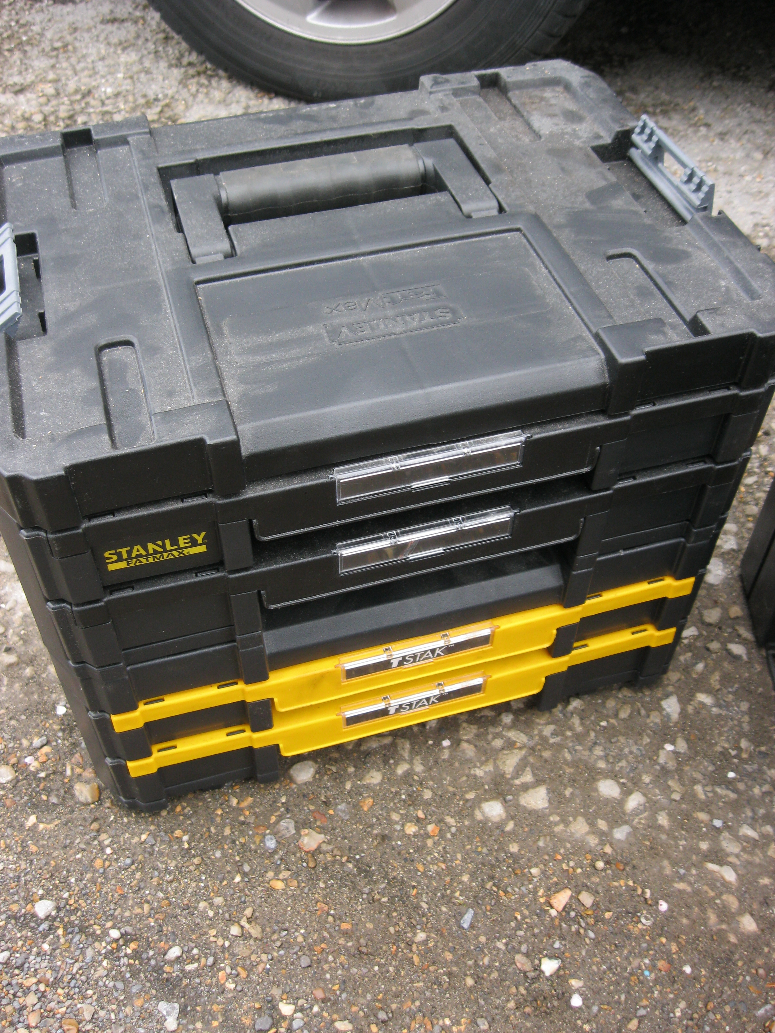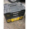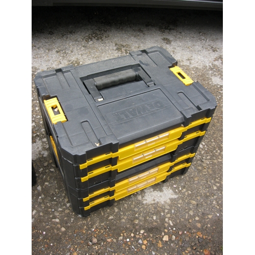 A DeWalt Tool T-Stak Shallow Drawer Pair of tool chests, the upper branded as Stanley