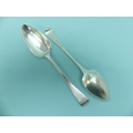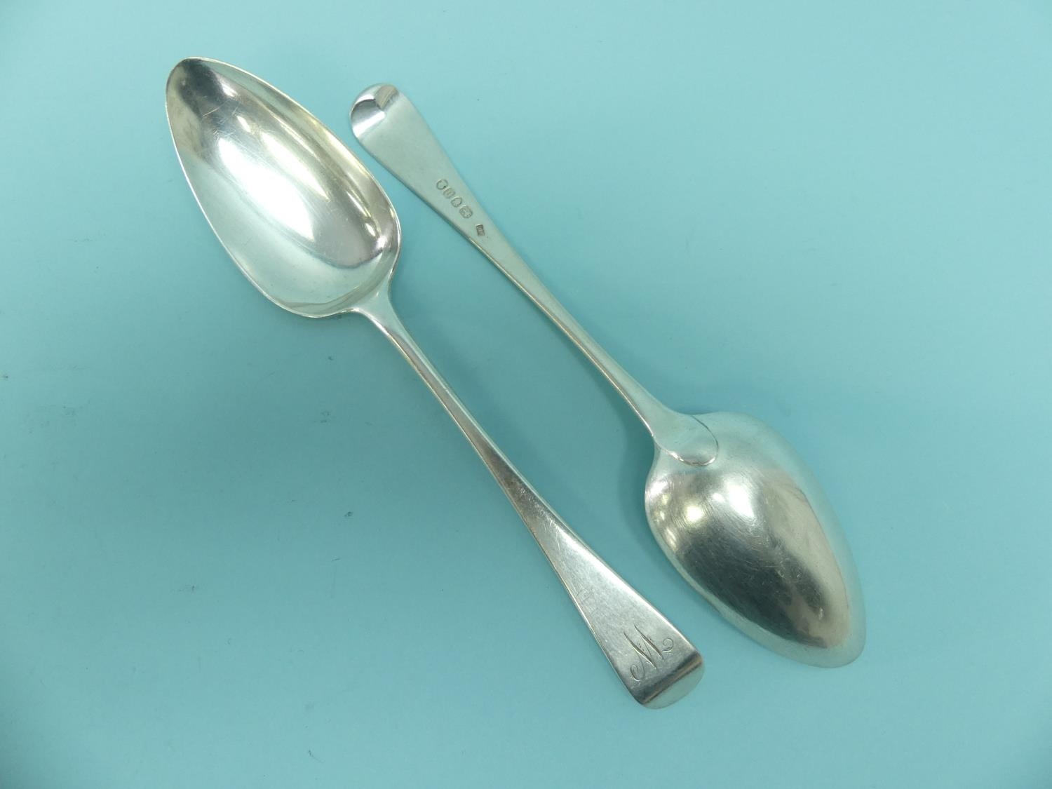 A pair of George III silver Old English pattern Table Spoons, by Solomon Hougham, hallmarked London, 1803, the handles initialled, 9in (23cm) long, approx total weight 4.6ozt (2)