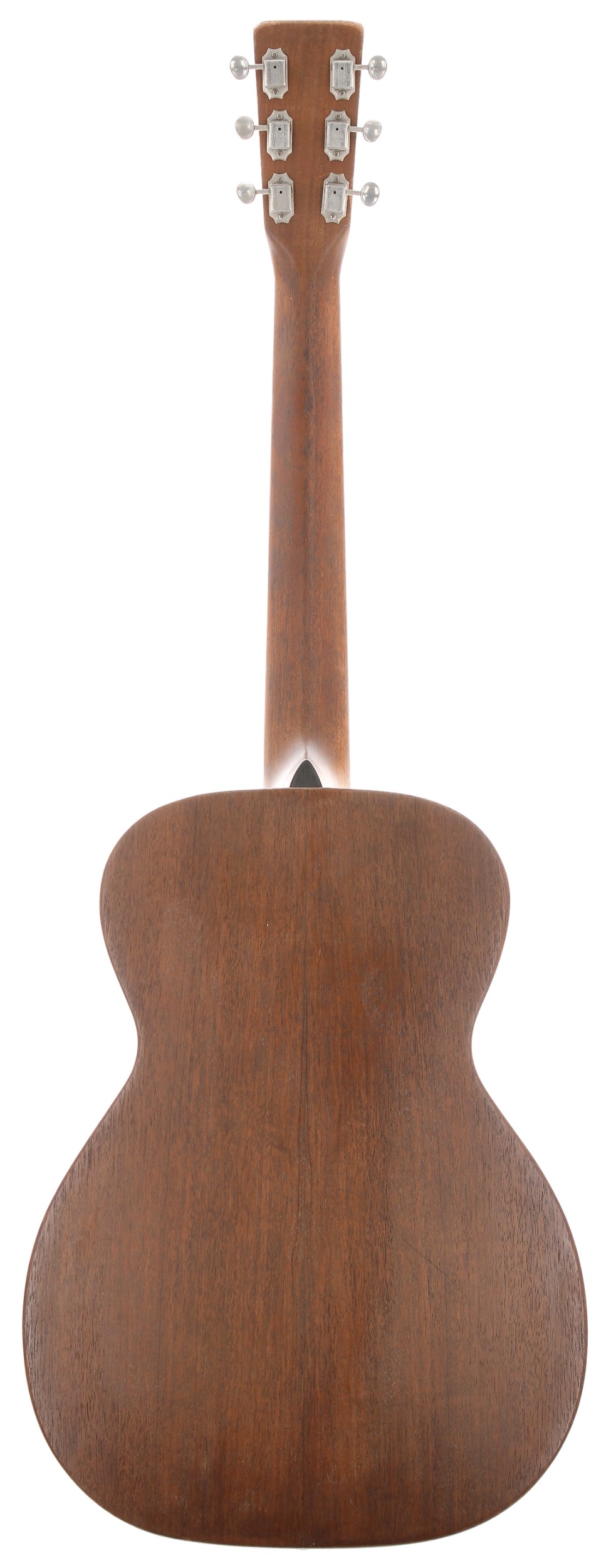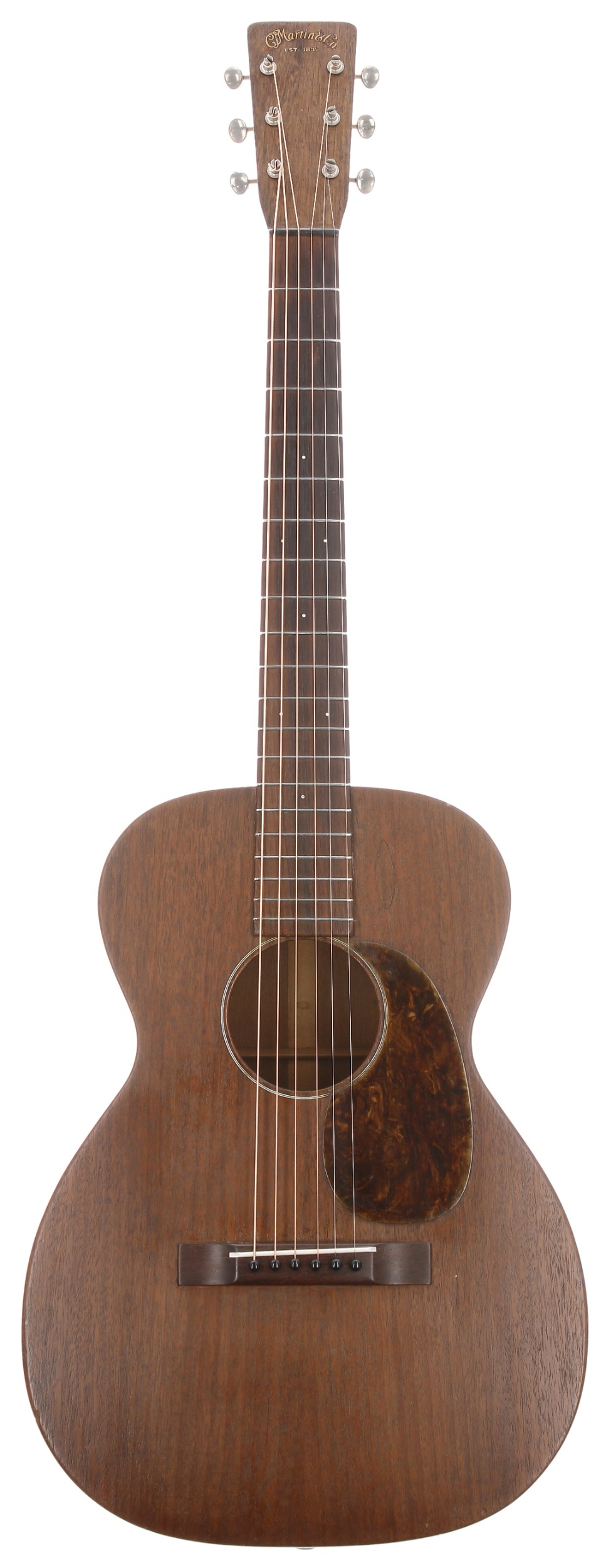 1934 C.F Martin 0-17 acoustic guitar, made in USA; Body: all mahogany, minor dings to edges and other minor marks, otherwise very good for age; Neck: mahogany, a few minor impressions, reset; Fretboard: Brazilian rosewood, light groove wear to first position; Frets: good, refret; Hardware: good, replacement 1950s Grover Deluxe Kluson style tuners; Case: contemporary Martin hard case; Overall condition: very good