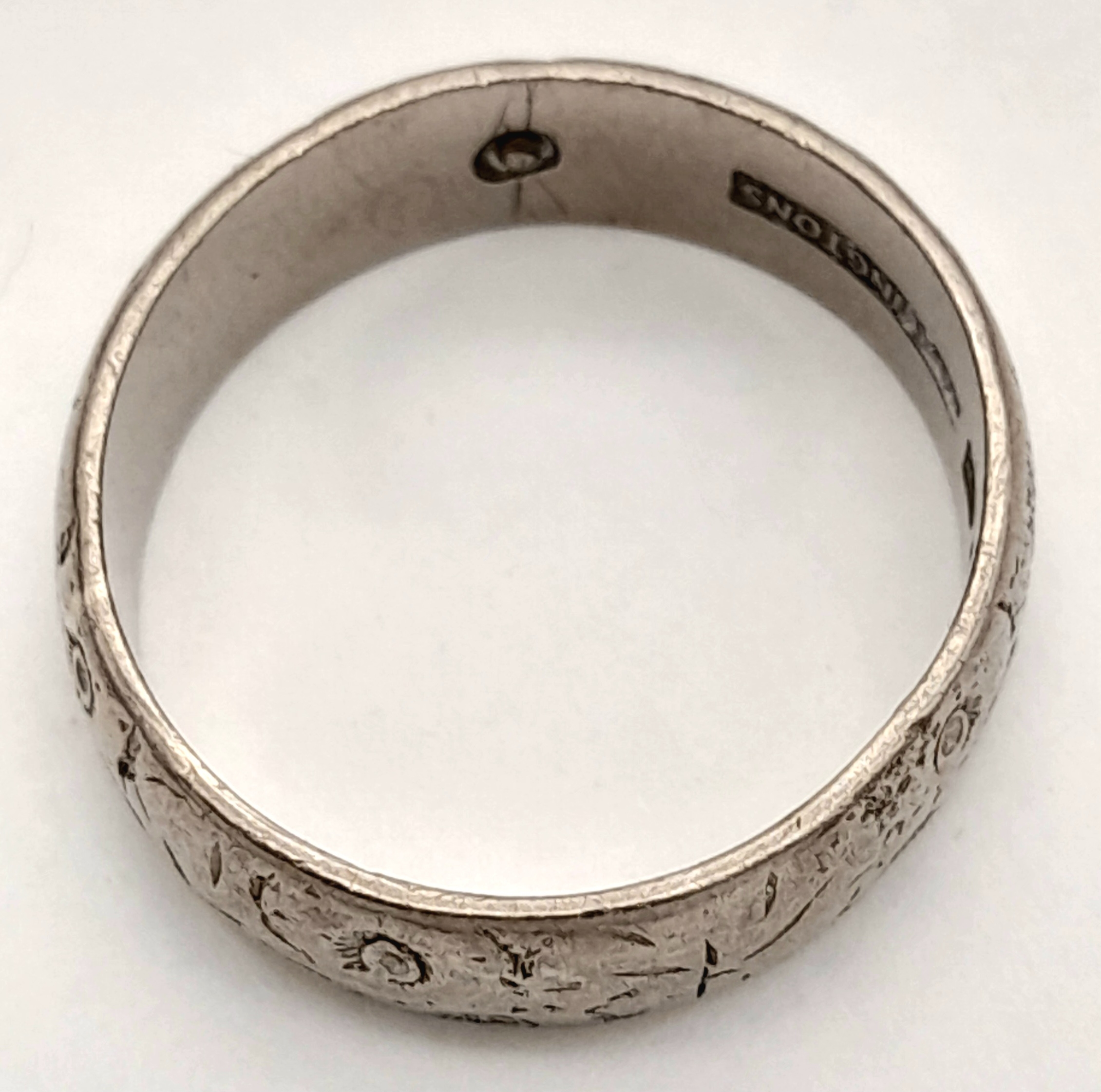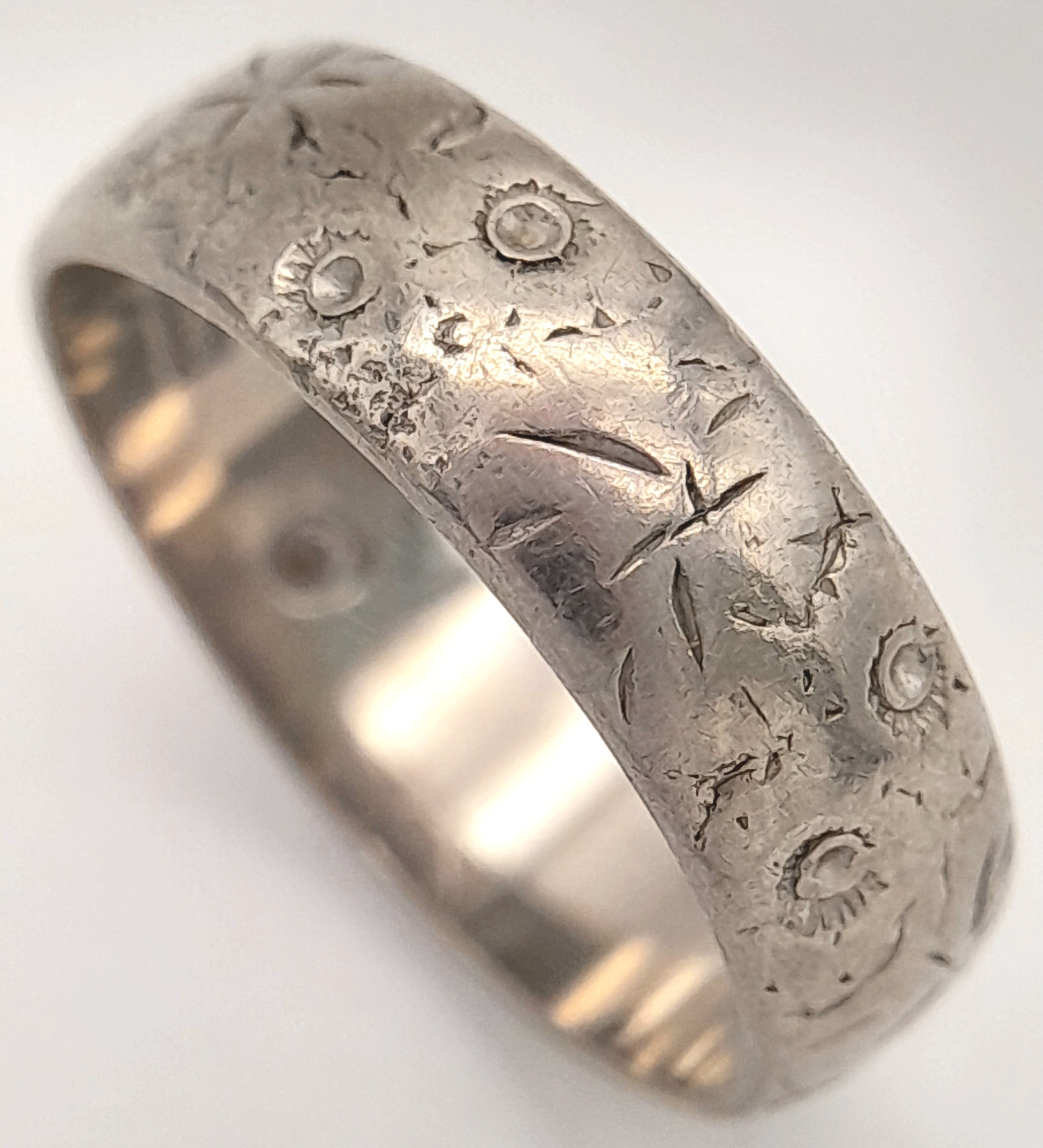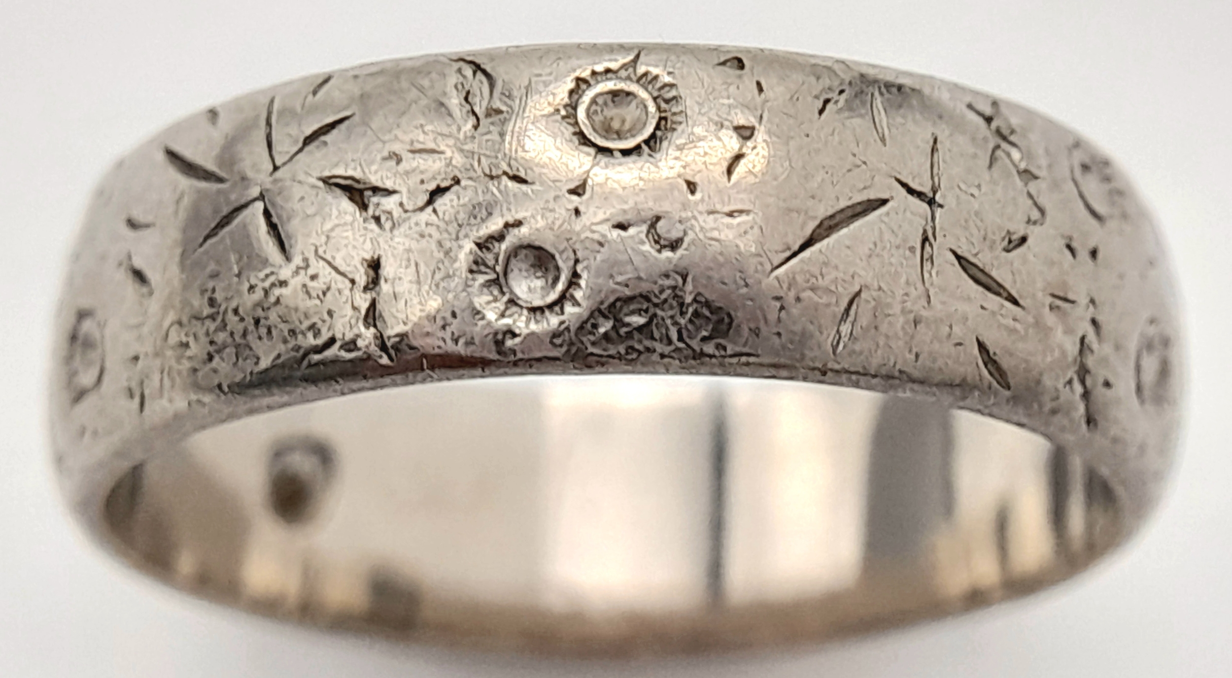 A Vintage 18K White Gold Band Ring. 6mm. Size O. 6.12g.