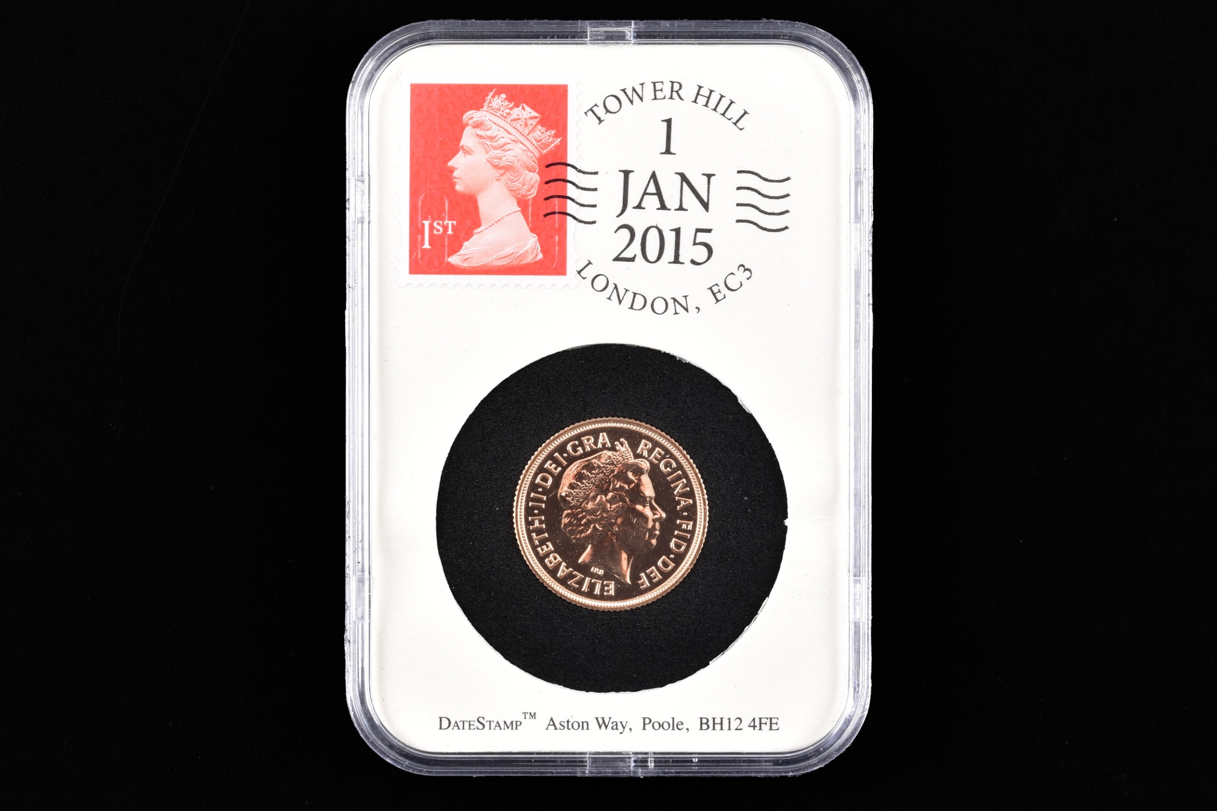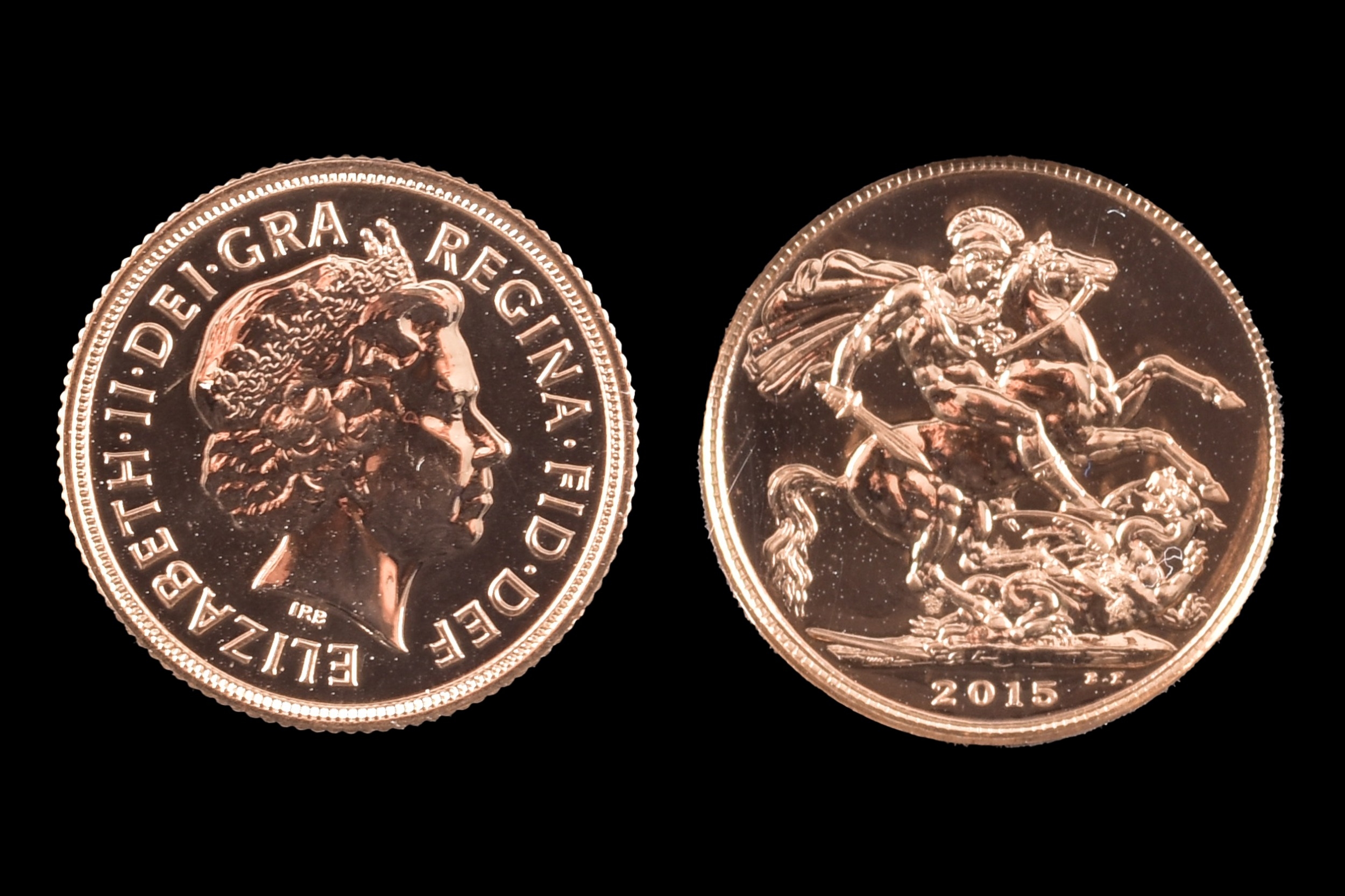 An Elizabeth II 2015 full gold sovereign, in presentation case.