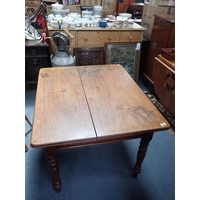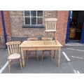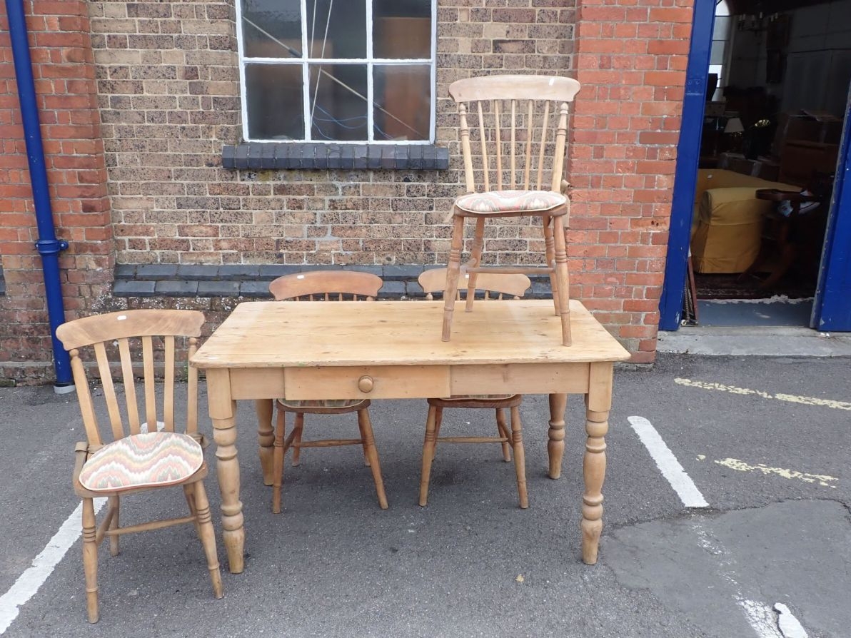 A VICTORIAN PINE KITCHEN TABLE AND FOUR WINDSOR KITCHEN CHAIRS (three spindle-back and one lath-back) (5). Provenance: The Estate of the late John Rollo Somerset-Paddon, formerly of Chalk Newton House, Maiden Newton, Dorset, thence by descent.