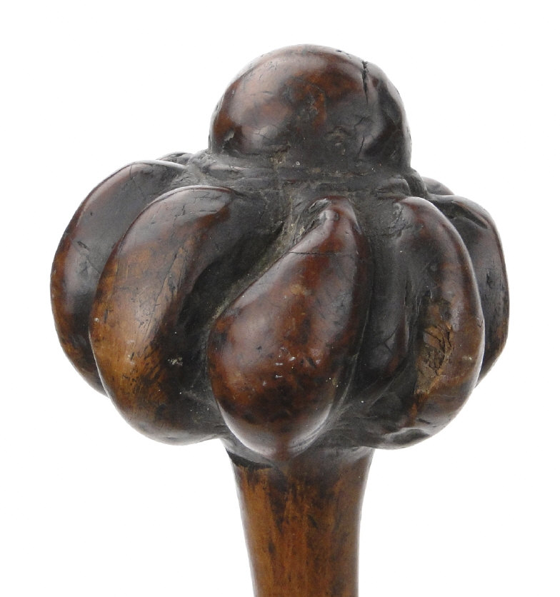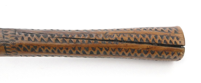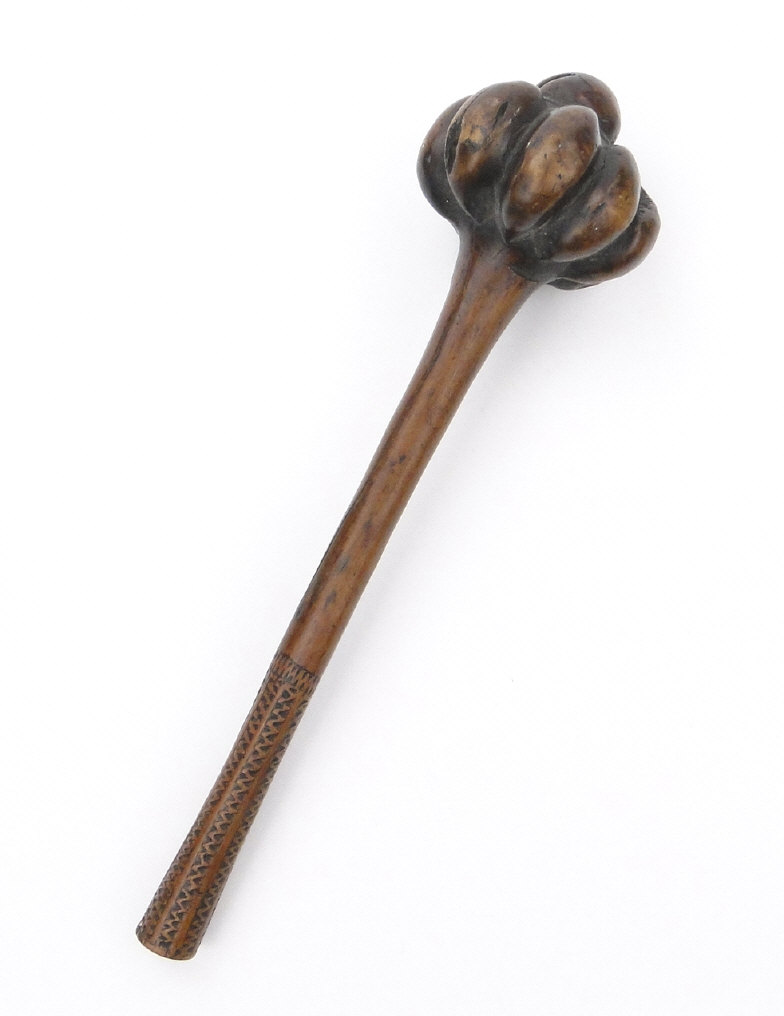 Far Eastern hardwood knobkerrie with chevron carved grip, 38cm in length