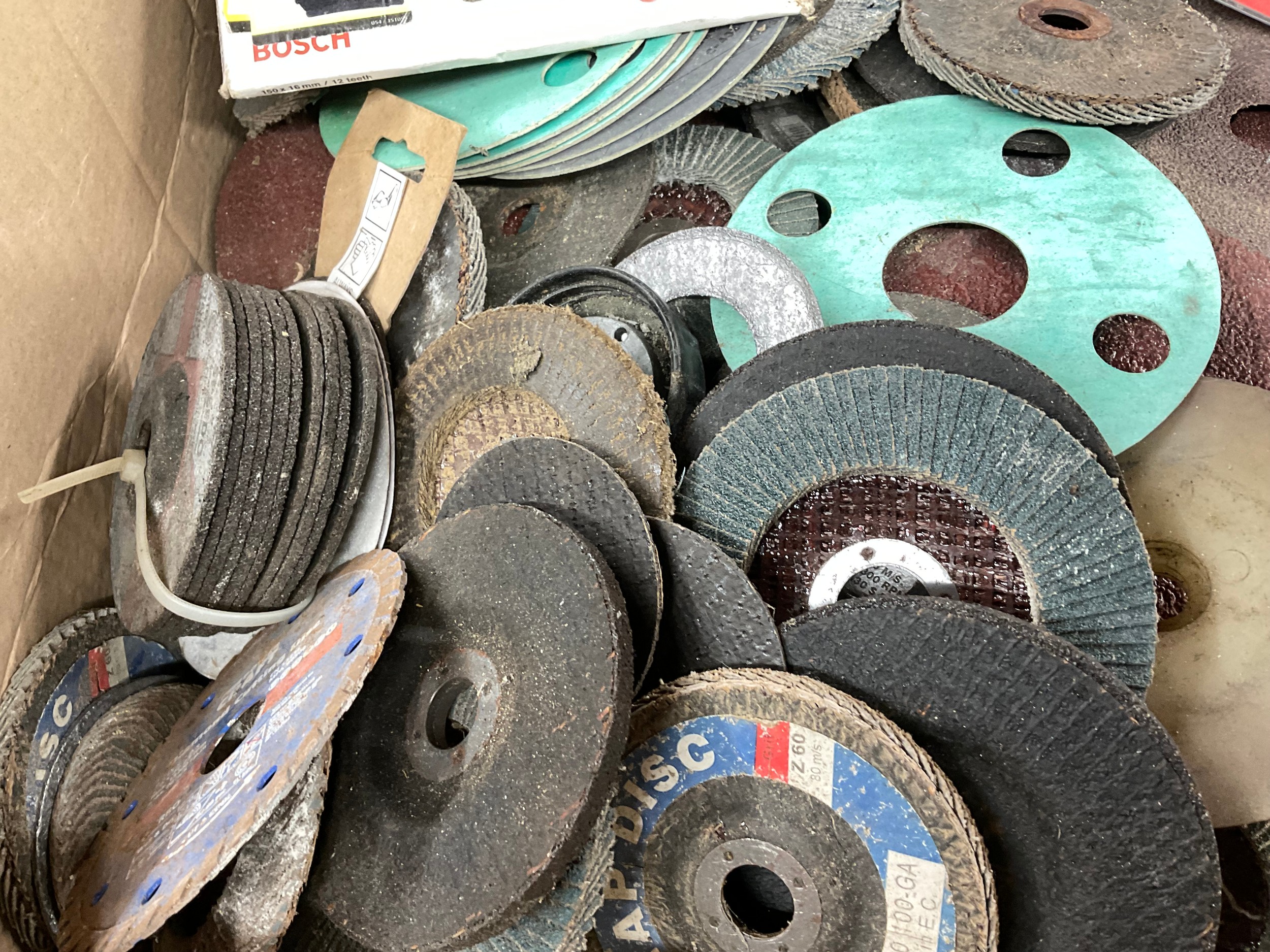 LARGE QTY OF SANDING PADS, DISCS, BELTS AND ANGLE GRINDER DI...