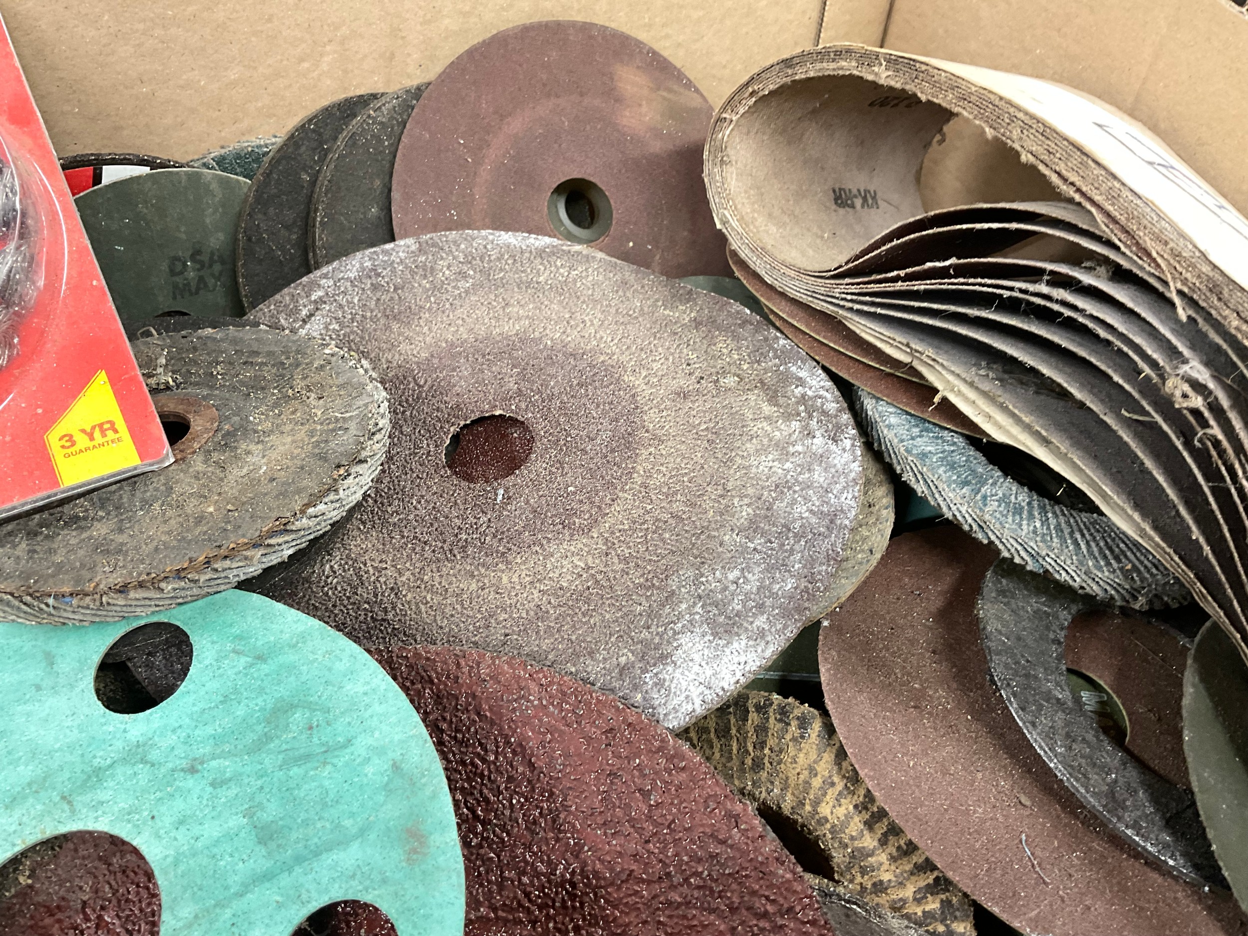 LARGE QTY OF SANDING PADS, DISCS, BELTS AND ANGLE GRINDER DISCS ETC