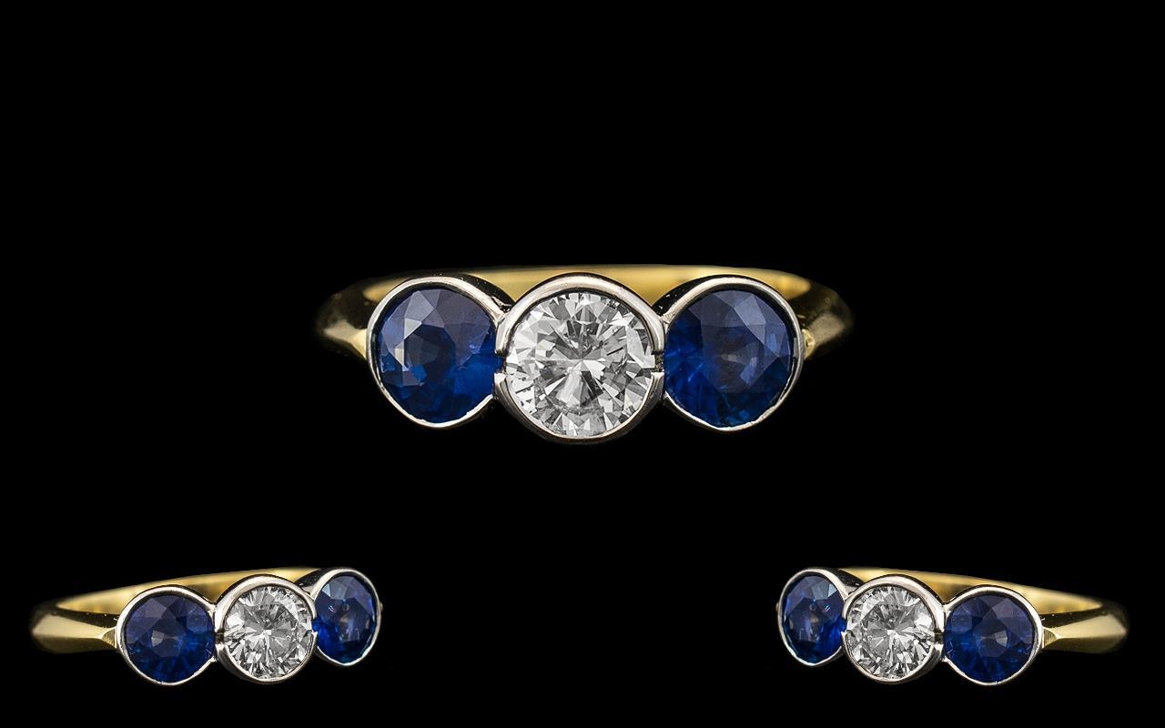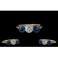 Art Deco Period Stunning Quality and Pleasing 3 Stone Diamond Set Dress Ring. The two round natural cornflower blue sapphires of pleasing and top quality colour. Estimated sapphire weight 1.00 cts. Diamond of top colour and clarity. estimated diamond weight 0.55 pts.