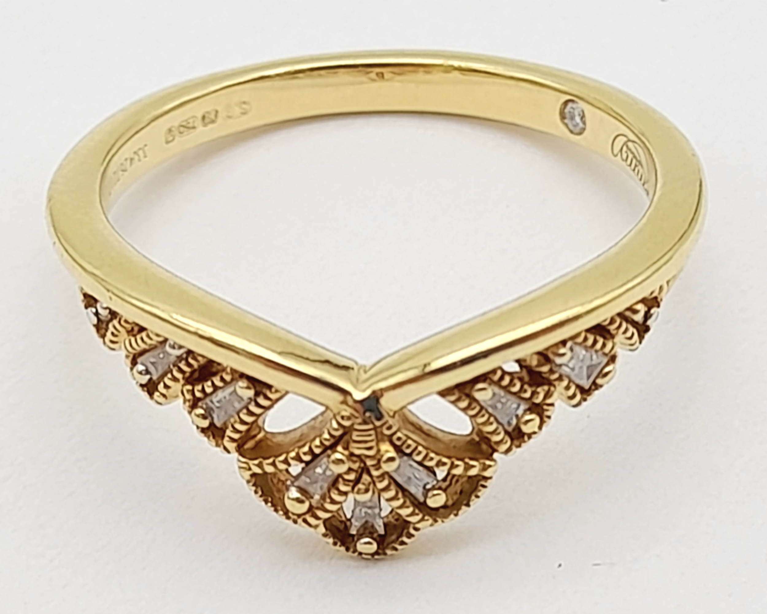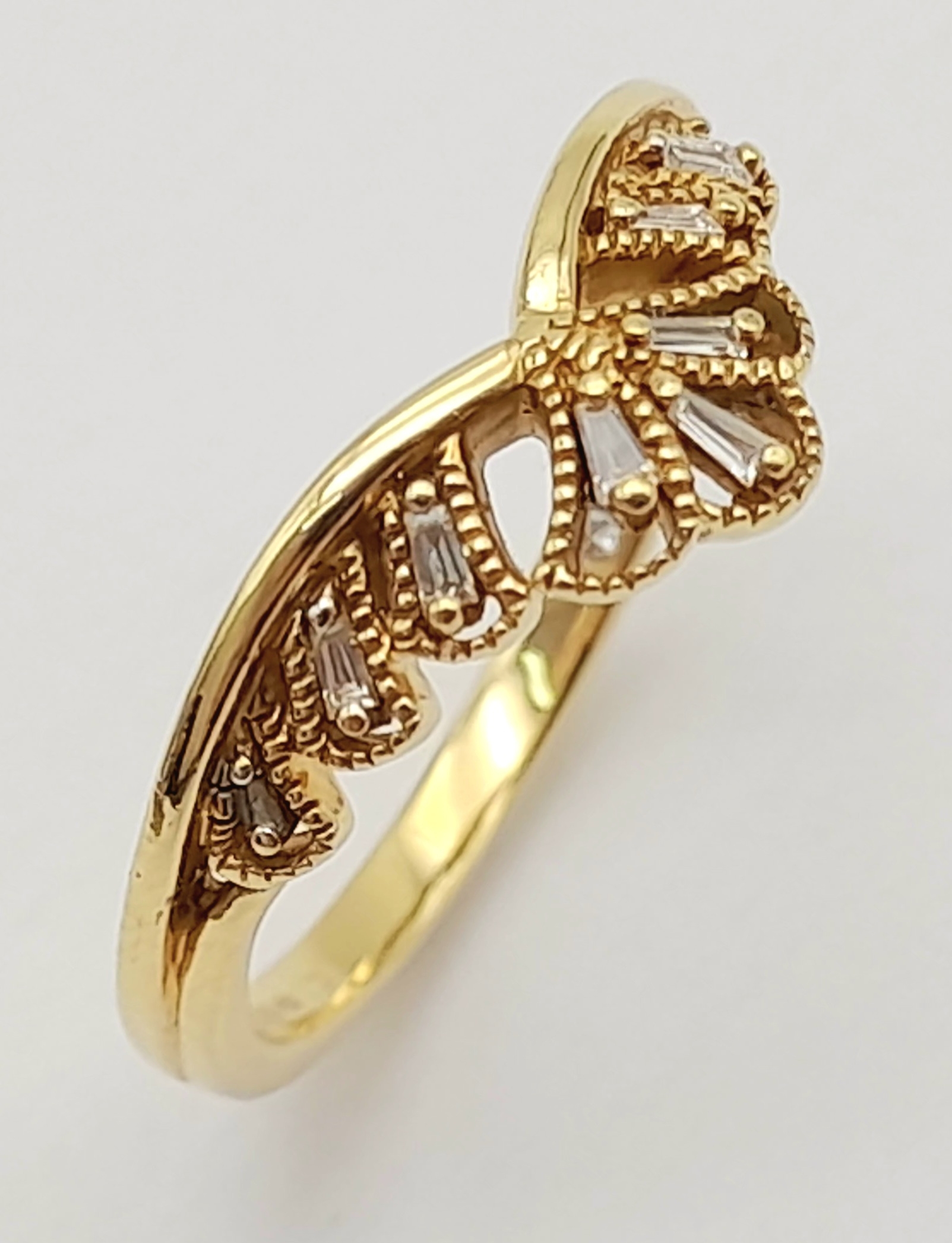 AN 18K YELLOW GOLD DIAMOND SET CROWN TIARA RING BY EMMY OF LONDON 2.9G TOTAL WEIGHT, SIZE L. REF: A/S 1258