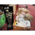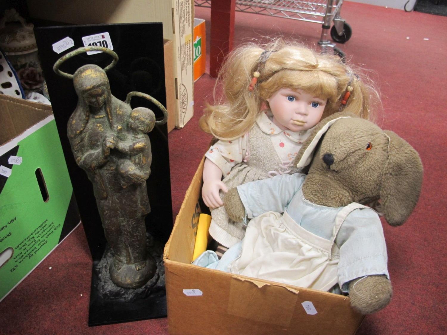 Gilt Religious Group with Perspex Backing Leonardo Doll, 41cm high, Brown plush rabbit. (3)