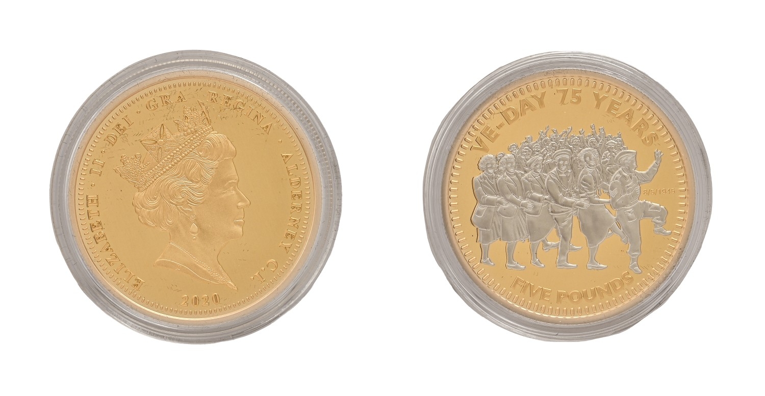 Gold coin. Alderney, proof commemorative Five Pounds 2020, cased