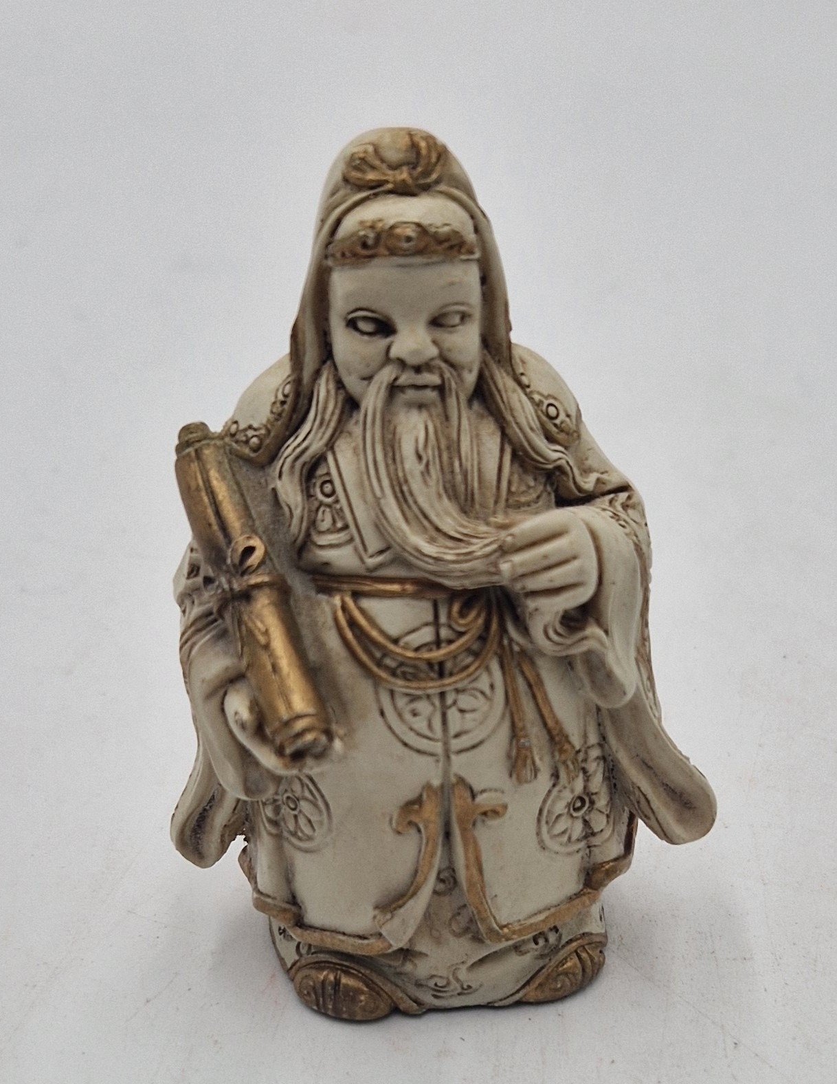 COMPOSITE 7.5cm SCULPTURE OF A CHINESE PROPHET SCROLLER