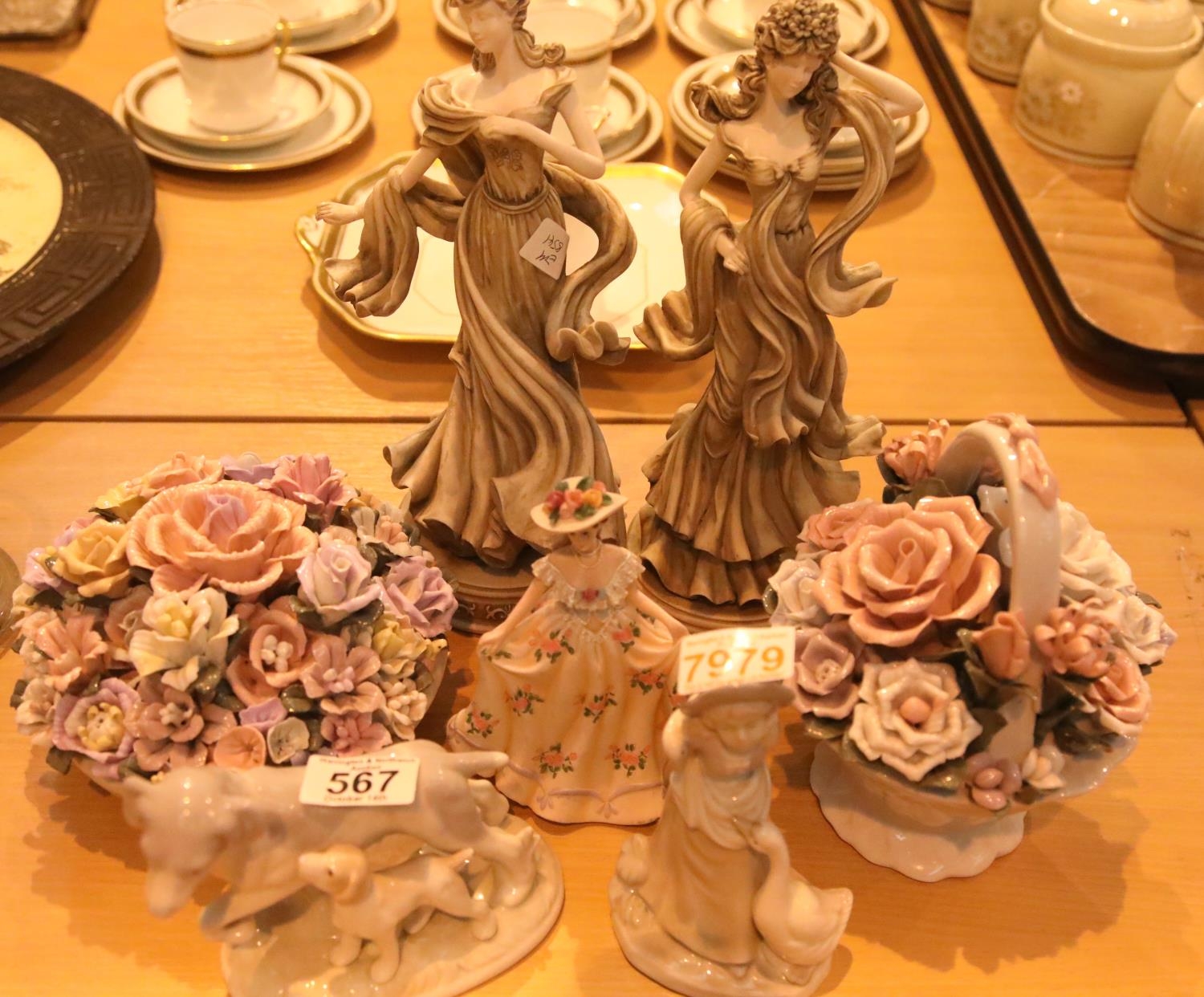 Collection of female figurines, flower bowls etc. Not available for in-house P&P.