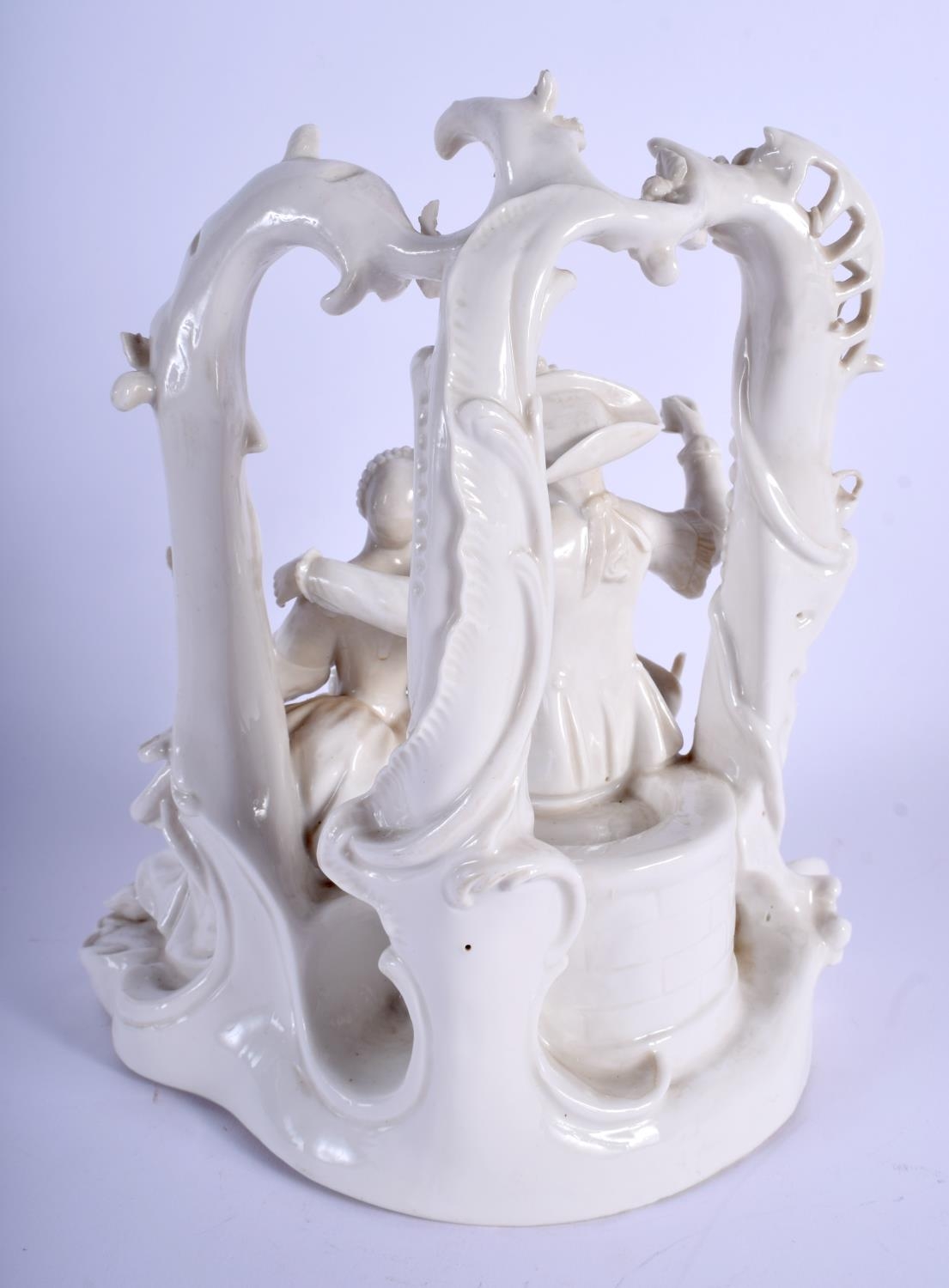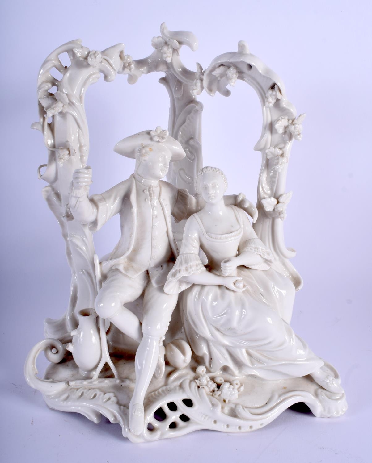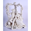 A 19TH CENTURY GERMAN DRESDEN PORCELAIN FIGURAL GROUP modelled as two lovers under an arch. 25 cm x 16 cm.