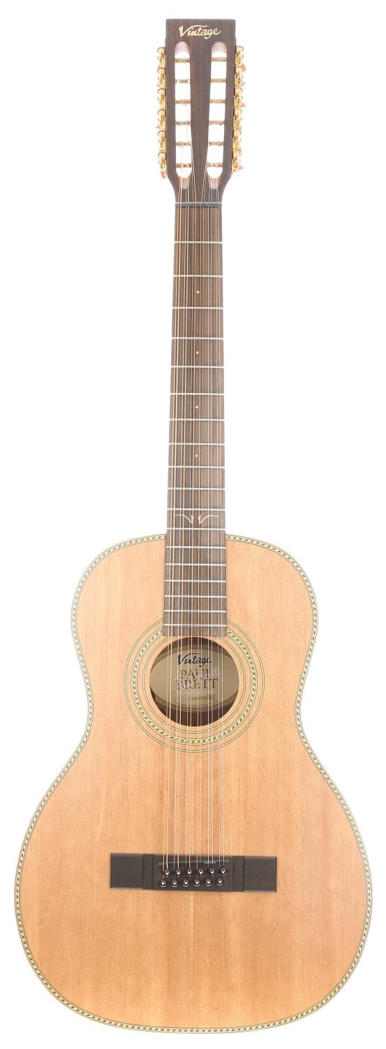JHS Vintage Paul Brett Signature Model VE8000PB-12 twelve string electro-acoustic guitar; Back and sides: rosewood; Top: natural spruce; Neck: mahogany; Fretboard: rosewood; Frets: good; Electrics: working; Hardware: good; Case: oversized Paul Brett Signature hard case; Overall condition: very good