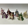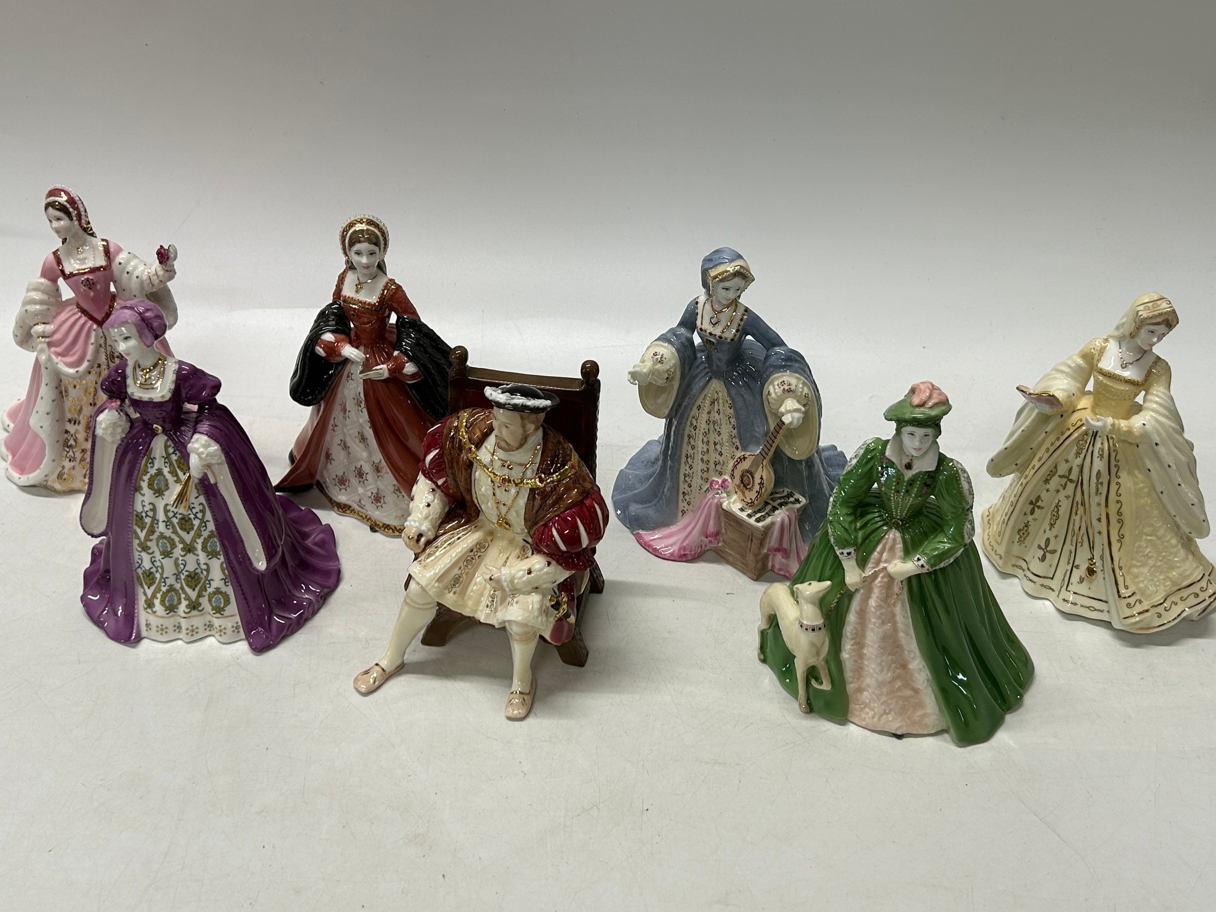 A limited edition Wedgwood set of King Henry VIII and his six wives comprising:- Henry VIII 1962 of 7500, Catherine Parr 1502 of 7500, Jane Seymour 1975 of 7500, Anne Of Cleves 999 of 7500, Catherine Of Aragon 1689 of 7500, Anne Boleyn 2624 of 7500 and Catherine Howard 1530 of 7500