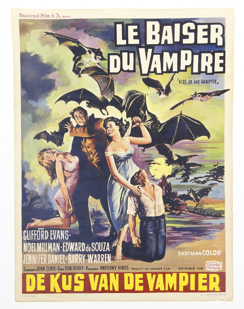 Vintage Belgian film poster - Le Baiser du Vampire (Kiss of the Vampire), 47cm x 35cm