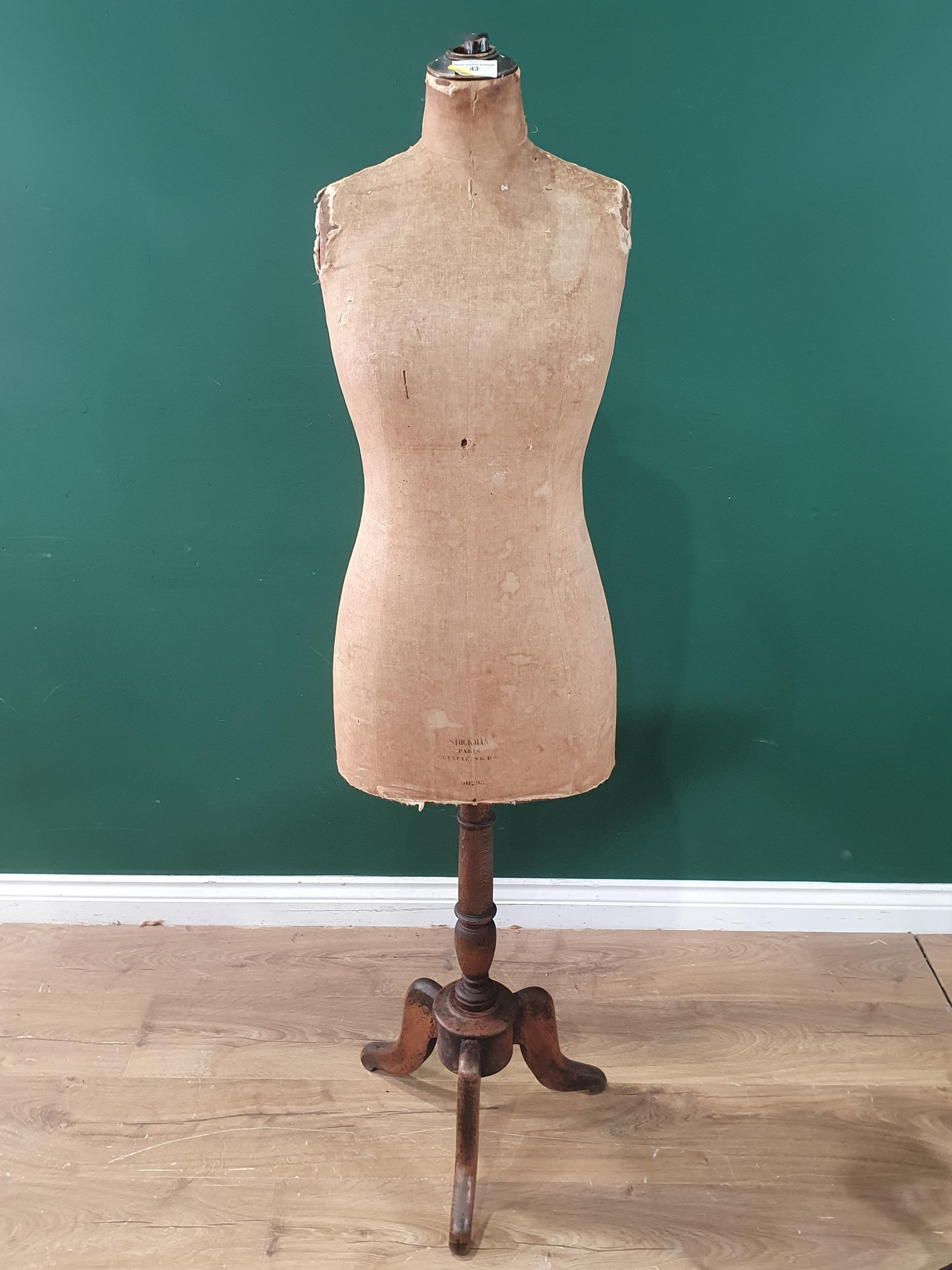 A Vintage Mannequin "Stockman Paris", raised on turned wooden tripod stand, A/F. (R10).