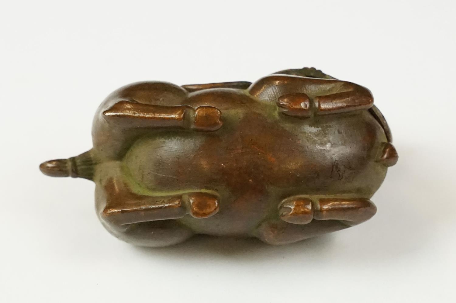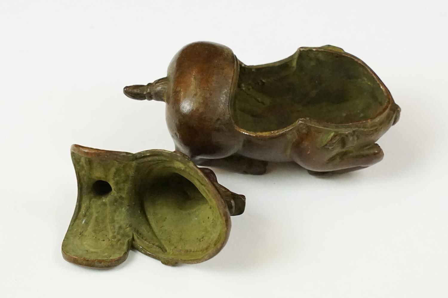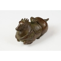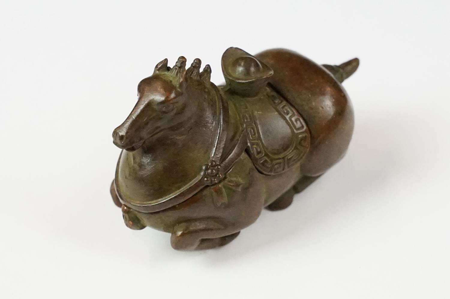 A Chinese copper writing brush / pen washer statue in the form of a horse, removable lid, measures approx 8.5cm x 6cm.