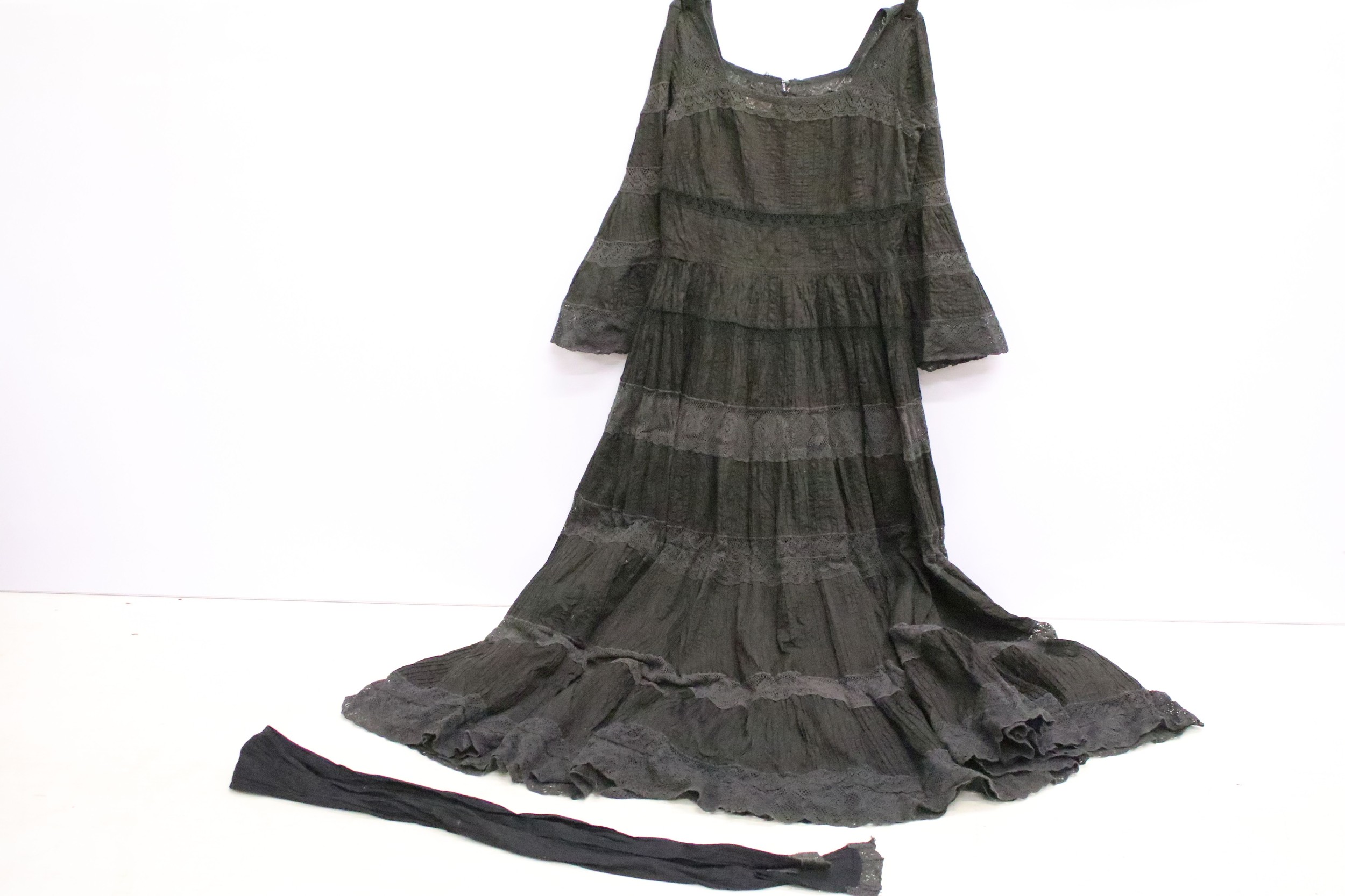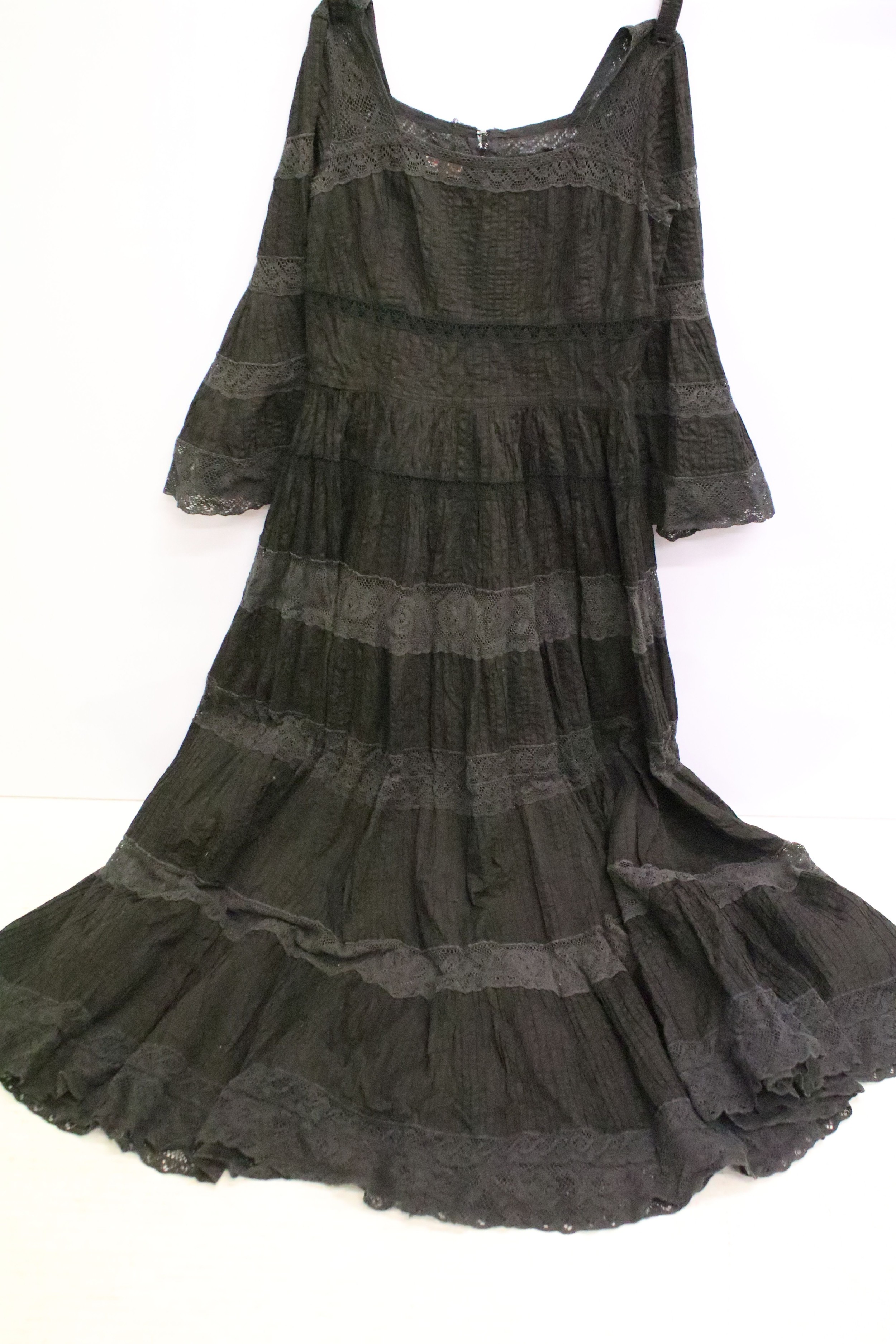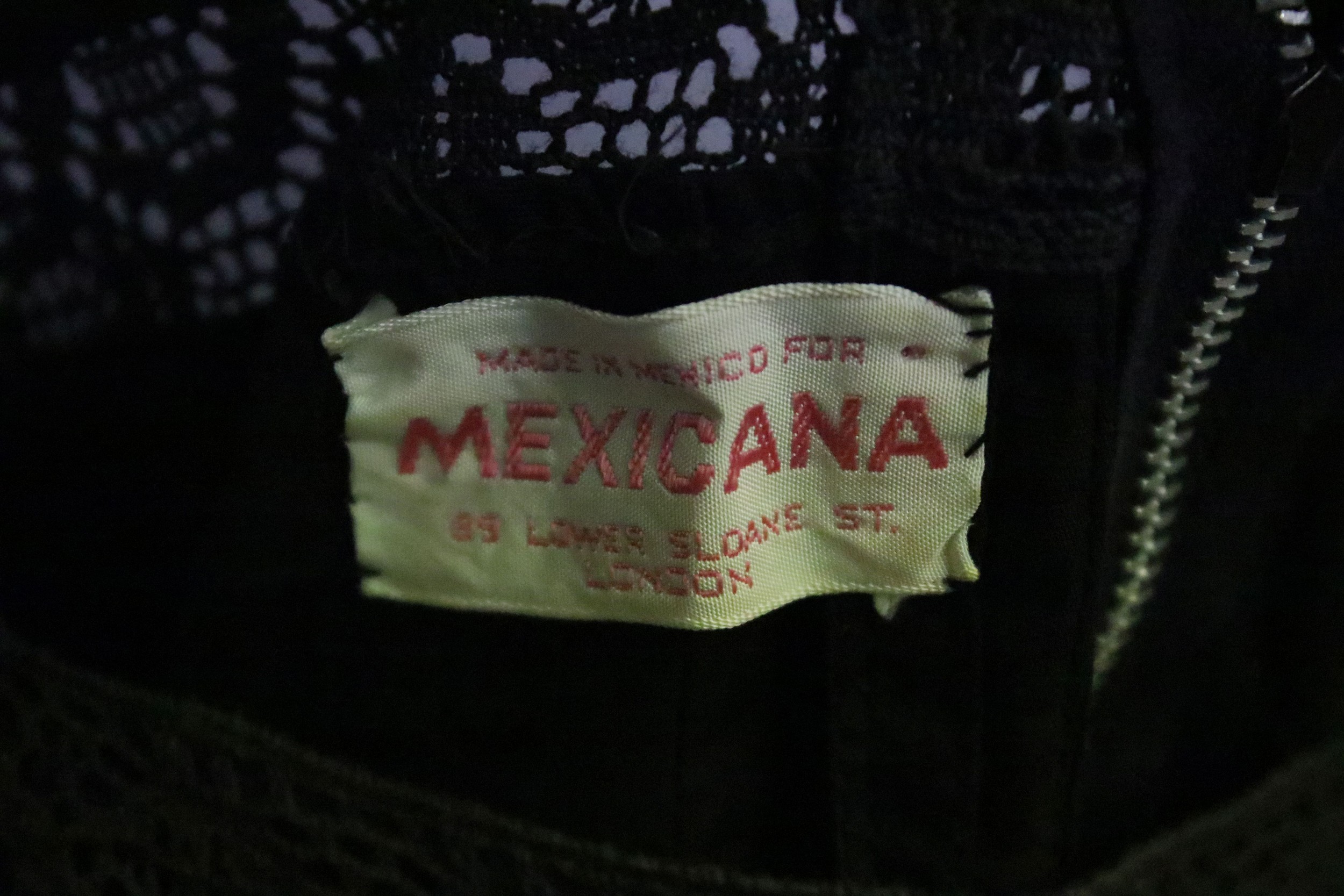 Vintage Mexican black hand stitched crochet panel dress. Mexicana lower Sloane Street london label within.