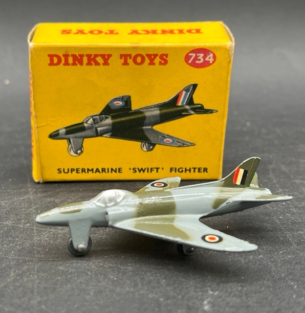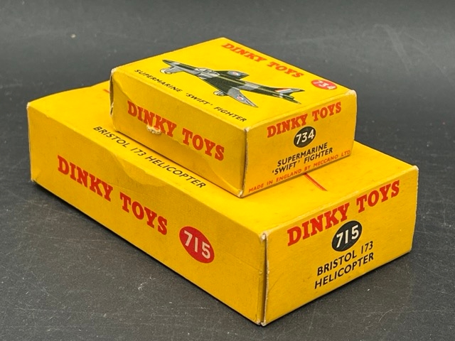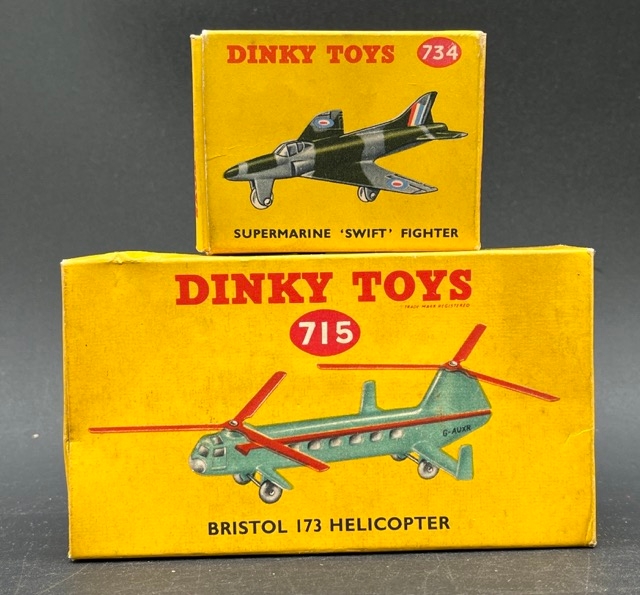 Dinky Toys 715 Bristol 173 Helicopter and Dinky Toys 734 Supermarine Swift Fighter both in Very Good boxes