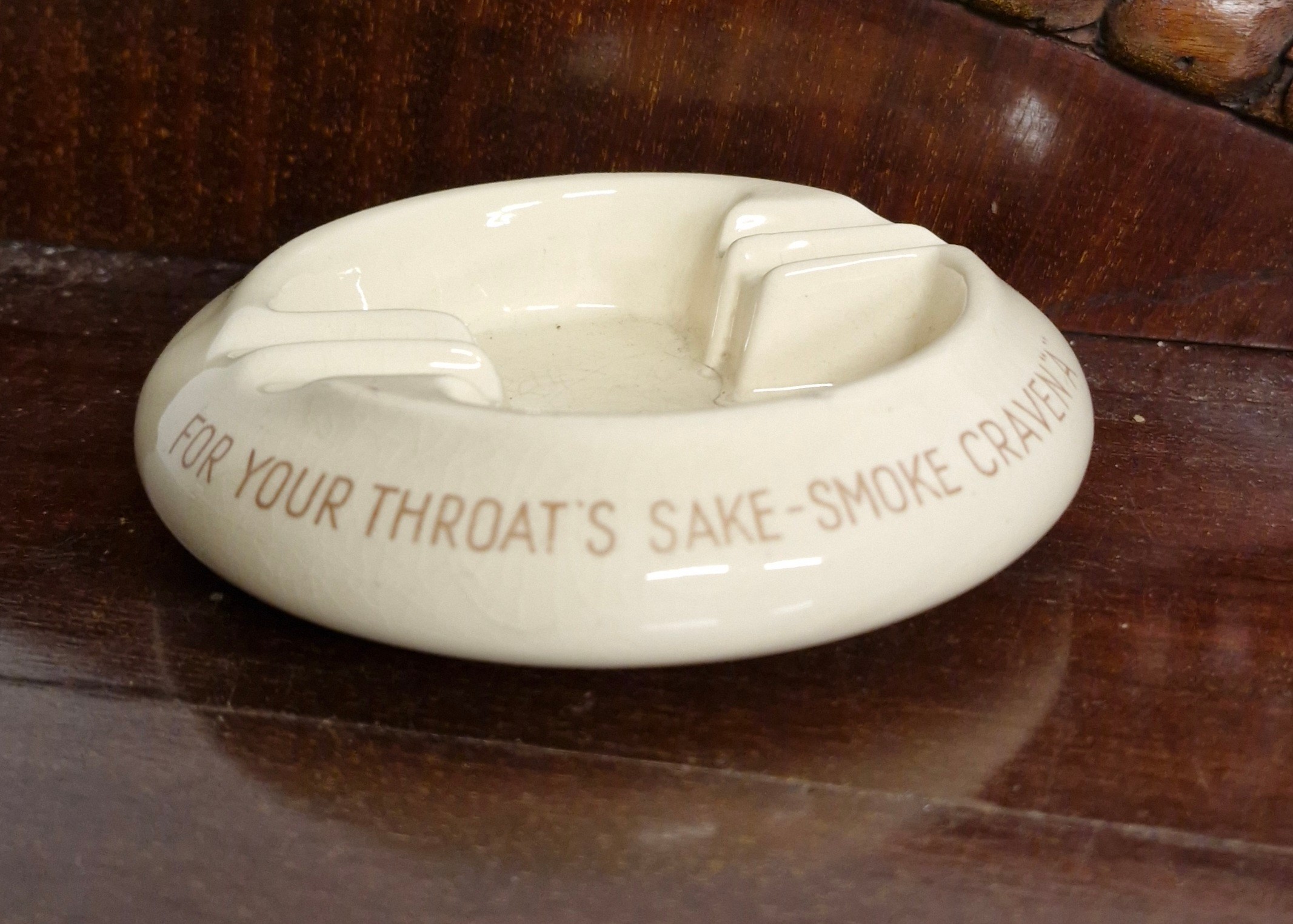 A Craven A Carrera London ashtray'FOR YOUR THROAT’SSAKE - SMOKE CRAVEN "A"