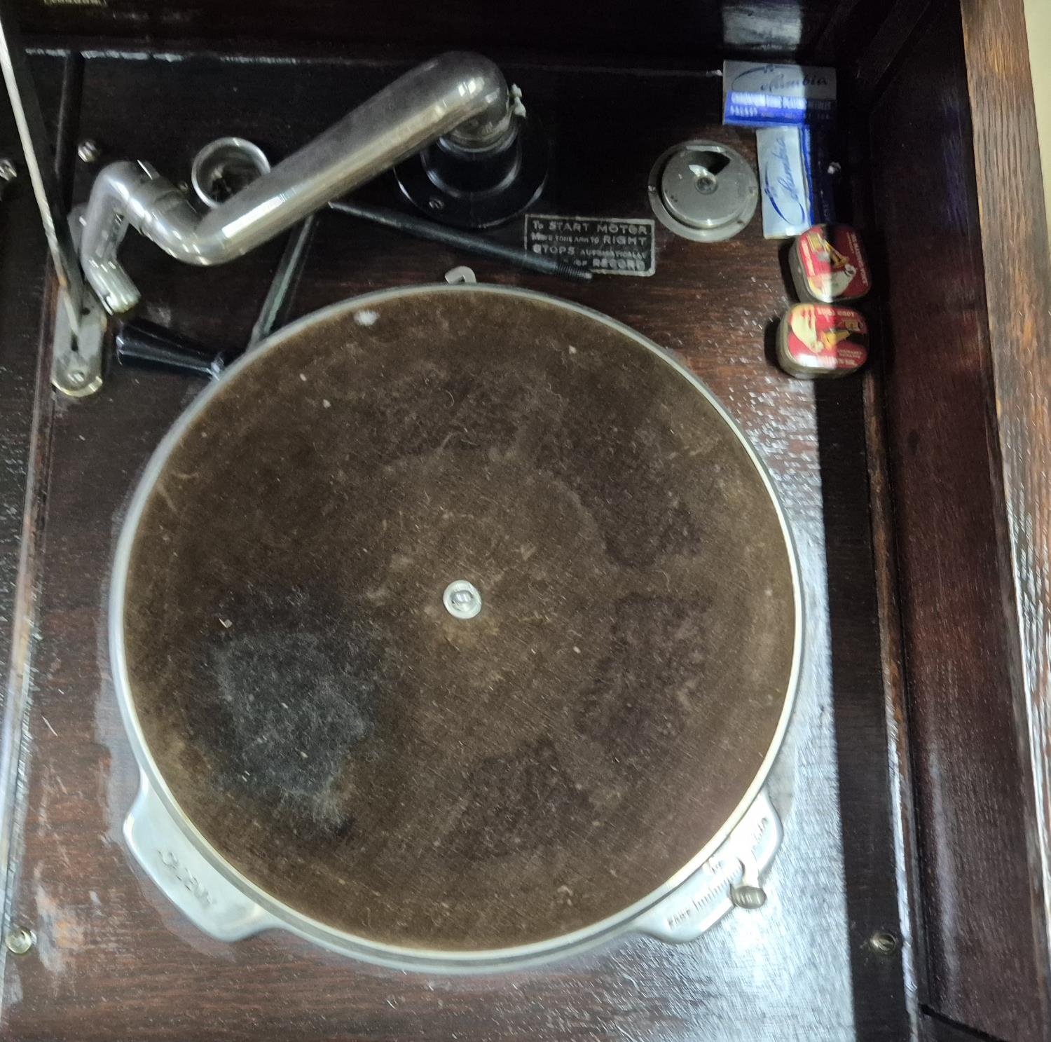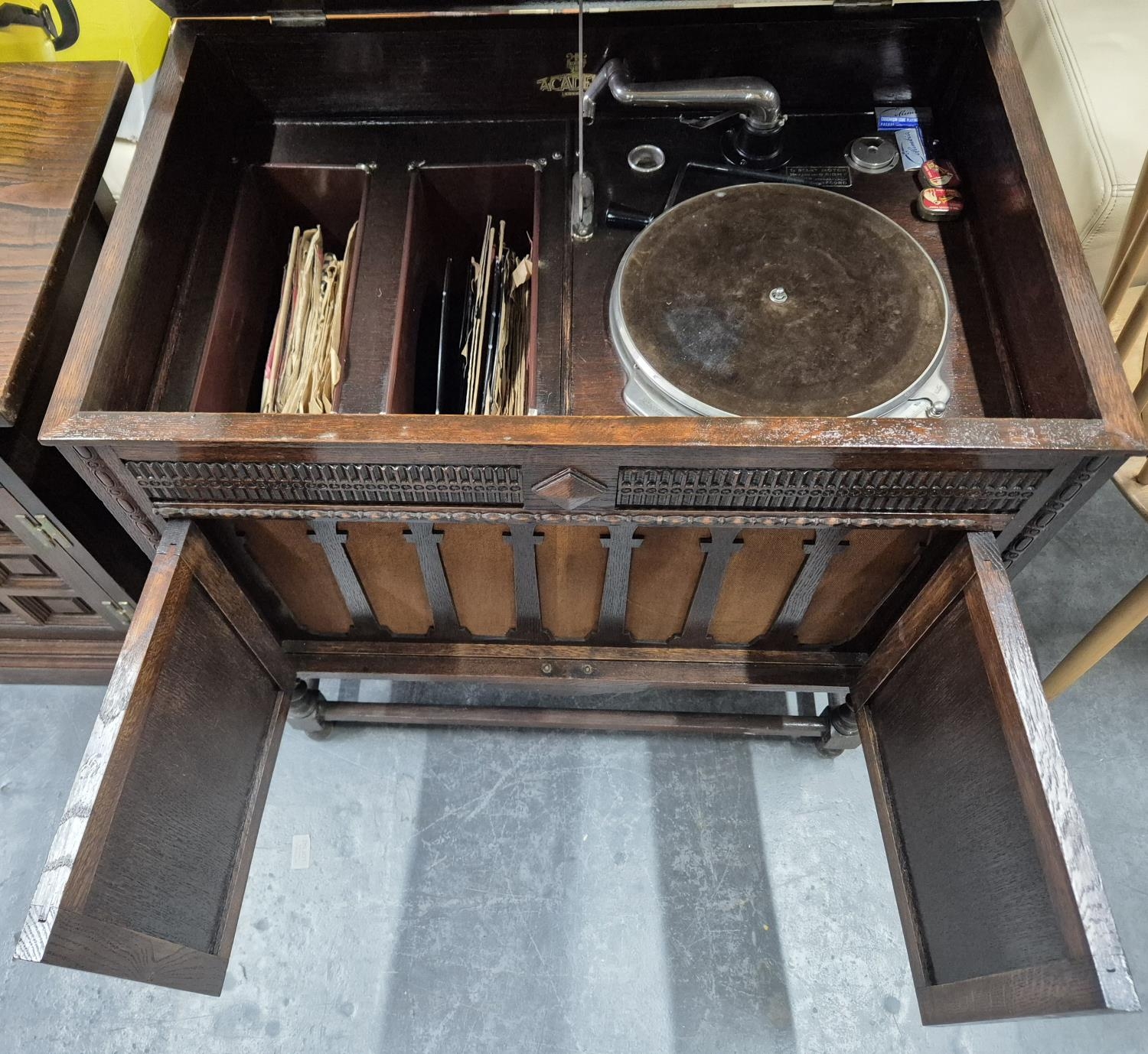 Early/mid 20thC Academy cabinet record player with period records