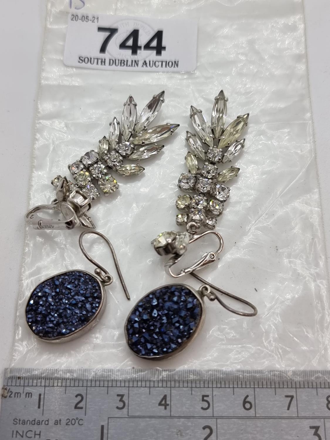 Two pairs of earrings including oval Starborn 925 earrings and a lovely pair of drop Gems set earrings marked Sherman. As New