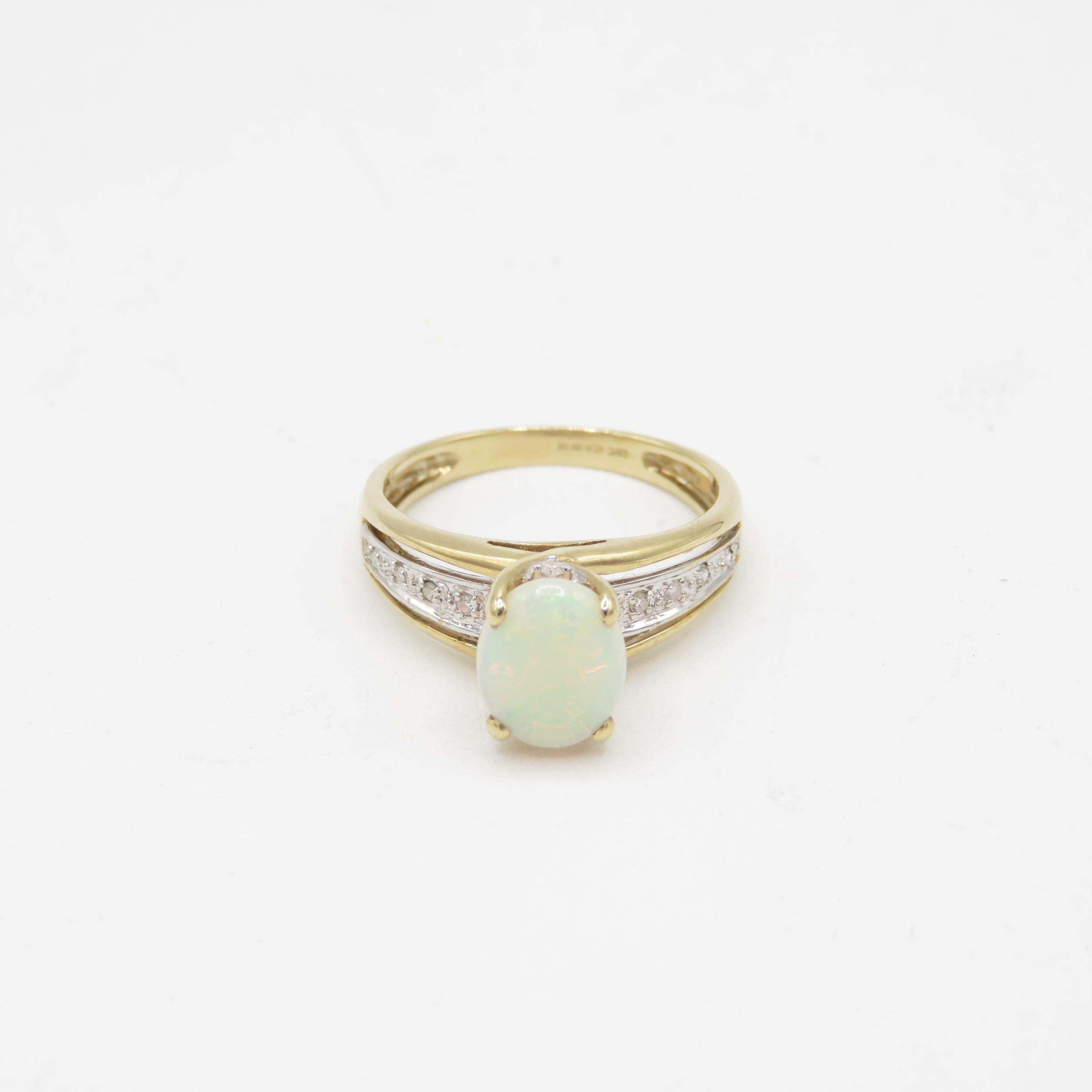 9ct gold opal & diamond dress ring (2.7g) Size N