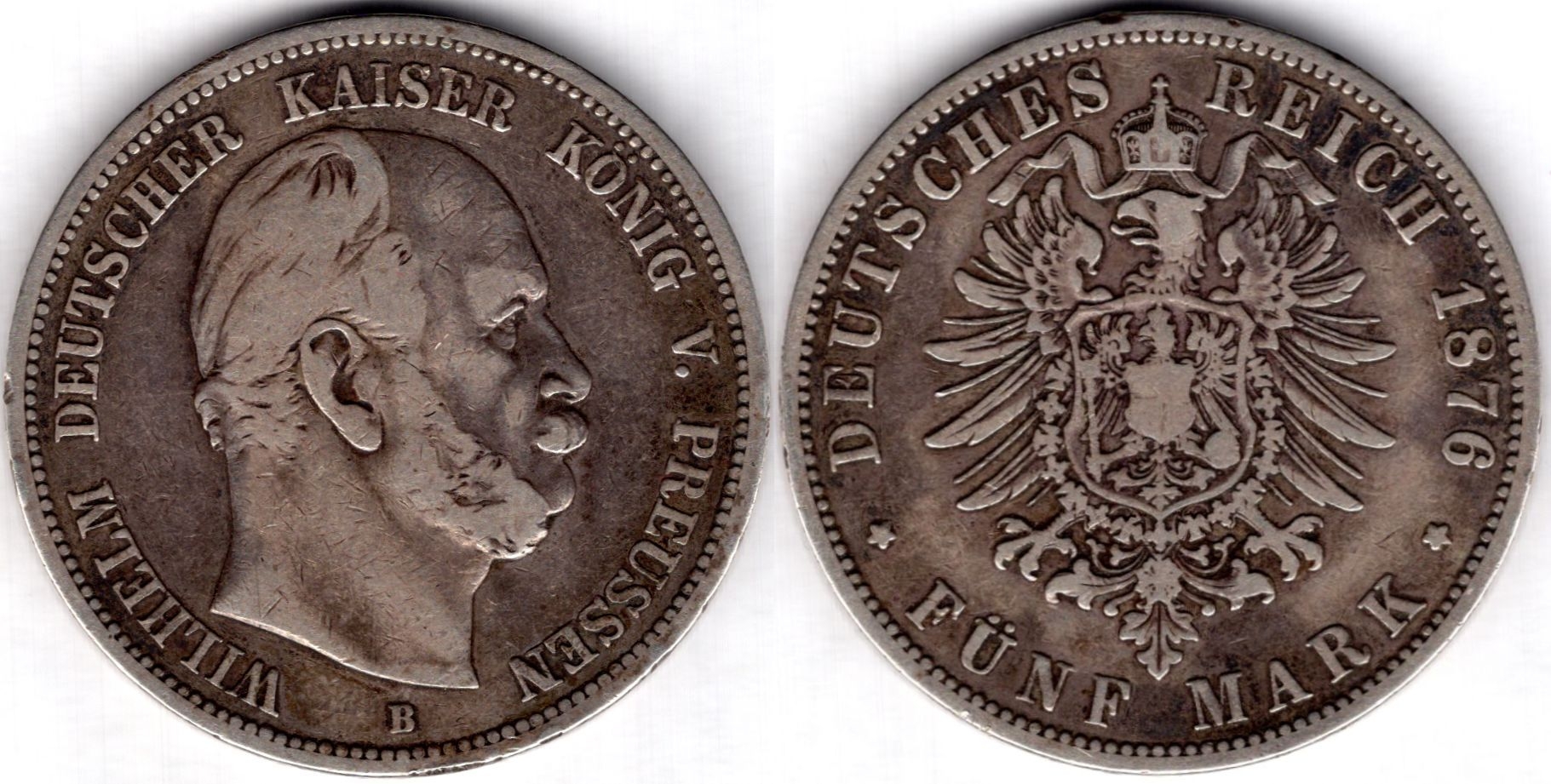 Prussia, 5 mark, 1876 B, VF edge bumps.